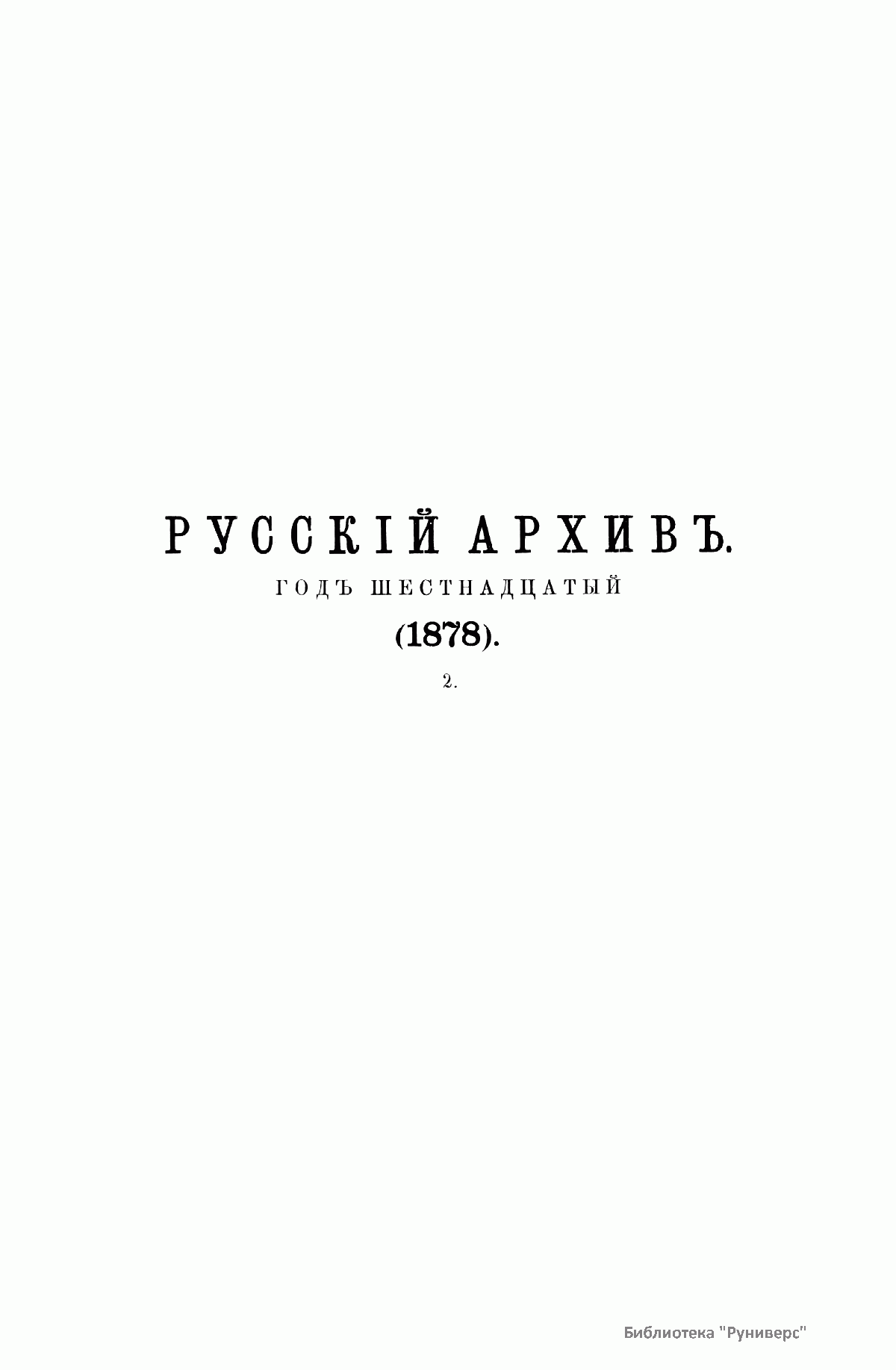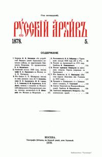 Русскiй архивъ. Историко-литературный сборникъ. 1878. Выпуски 5-8