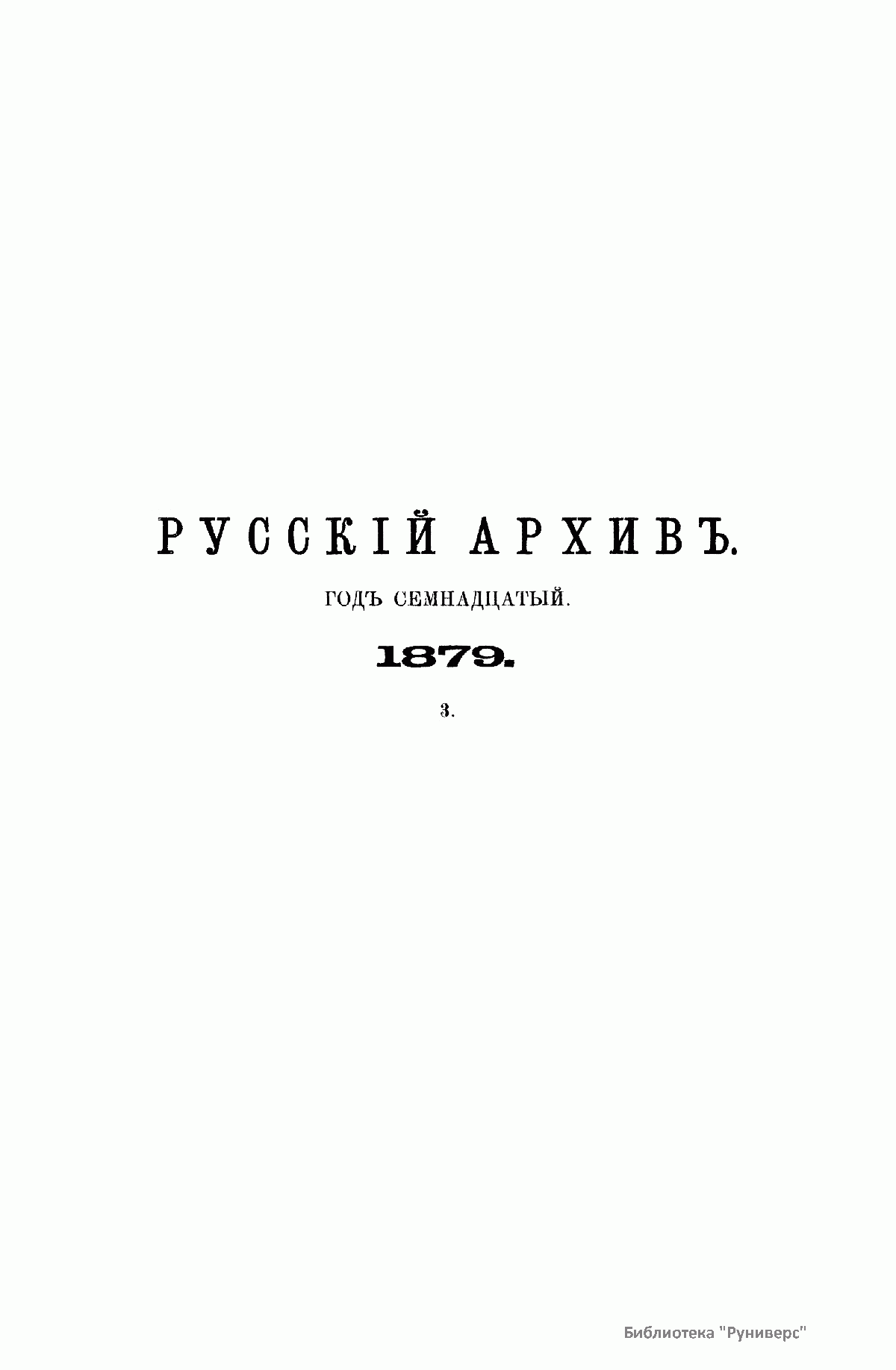 «Русский архив» — ежемесячный историко-литературный журнал, издававшийся в Москве с 1863 по 1917 год. Создателем и продолжительные годы редактором журнала был П. И. Бартенев – историк, археограф, библиограф. Этот журнал называли «живой картиной былого», поскольку он содержал преимущественно публикации неизданных мемуарных, эпистолярных, литературно-художественных и ведомственных документальных материалов, освещавших культурную и политическую историю России в XVIII и XIX вв. По числу опубликованных источников «Русский архив» стоит на первом месте среди русских исторических журналов.