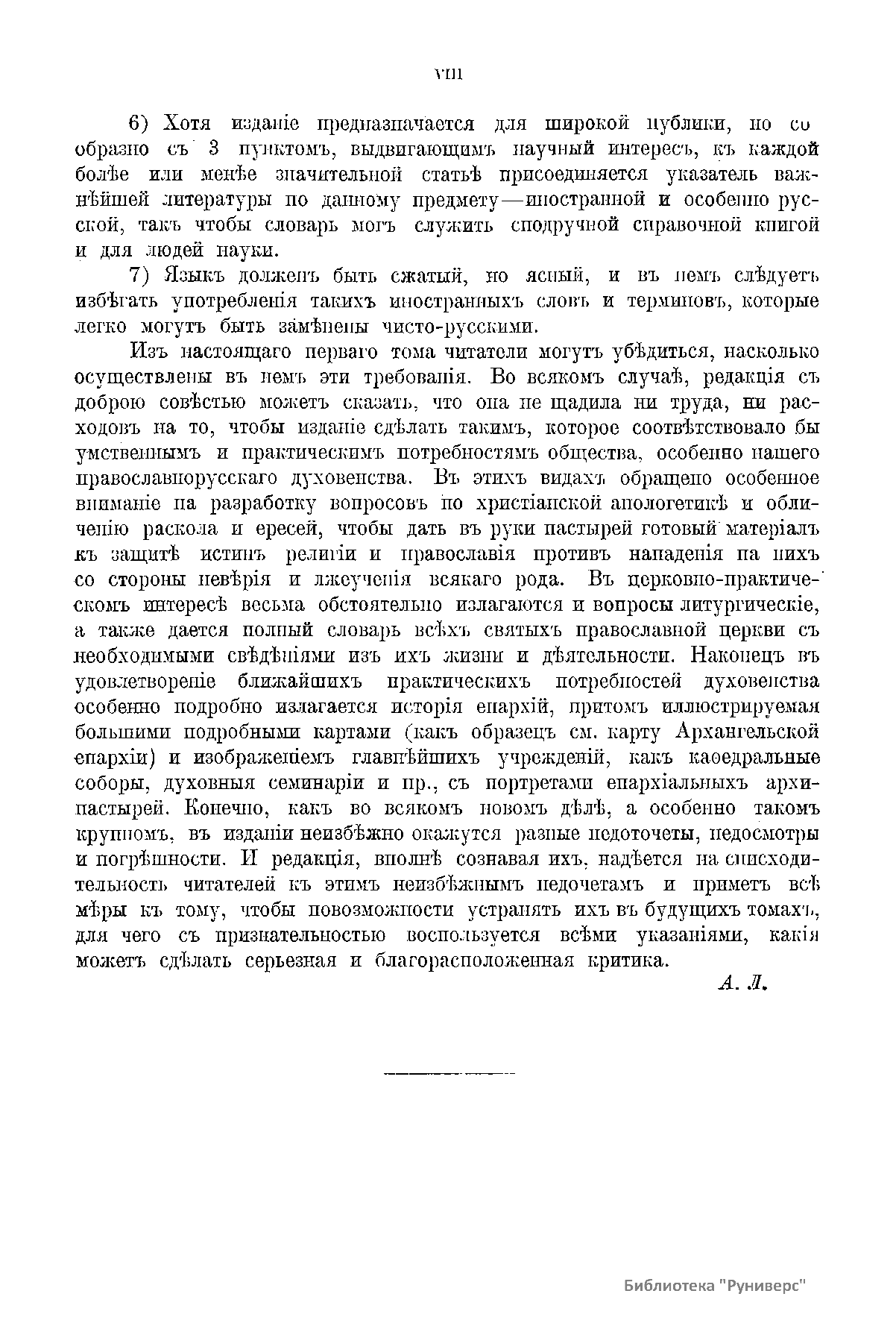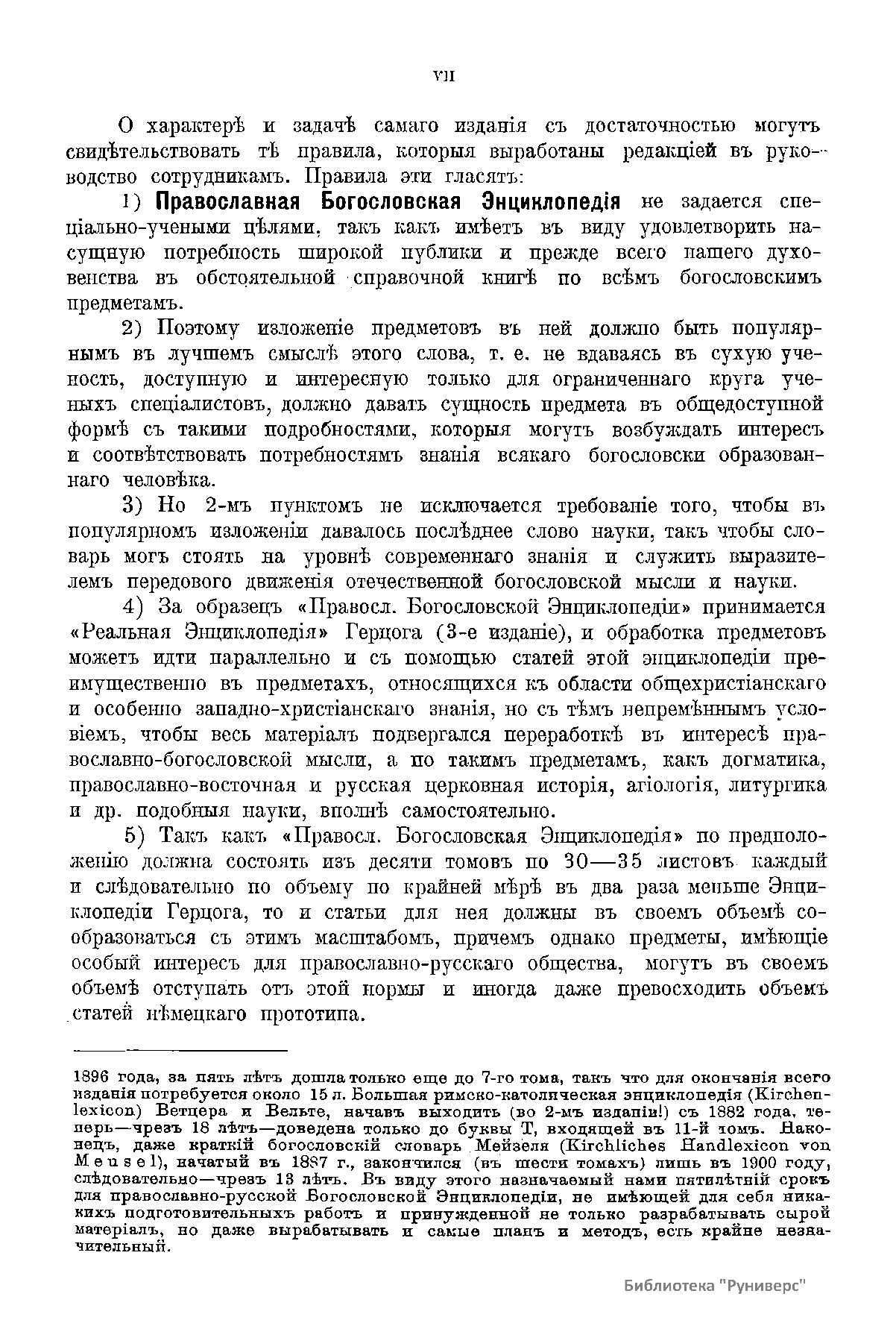 Редакция стремилась удовлетворить насущную потребность в знаниях широкой публики, а также духовенства, что определило научно-популярный стиль изложения. В то же время общедоступная форма не исключает соответствие энциклопедии уровню современного знания. К каждой значительной статье присоединяется указатель важнейшей литературы по данному предмету – иностранной и русской, так, чтобы издание могло служить справочником и для людей науки. В издании приняли участие представители всех духовных академий, а также некоторых университетов.