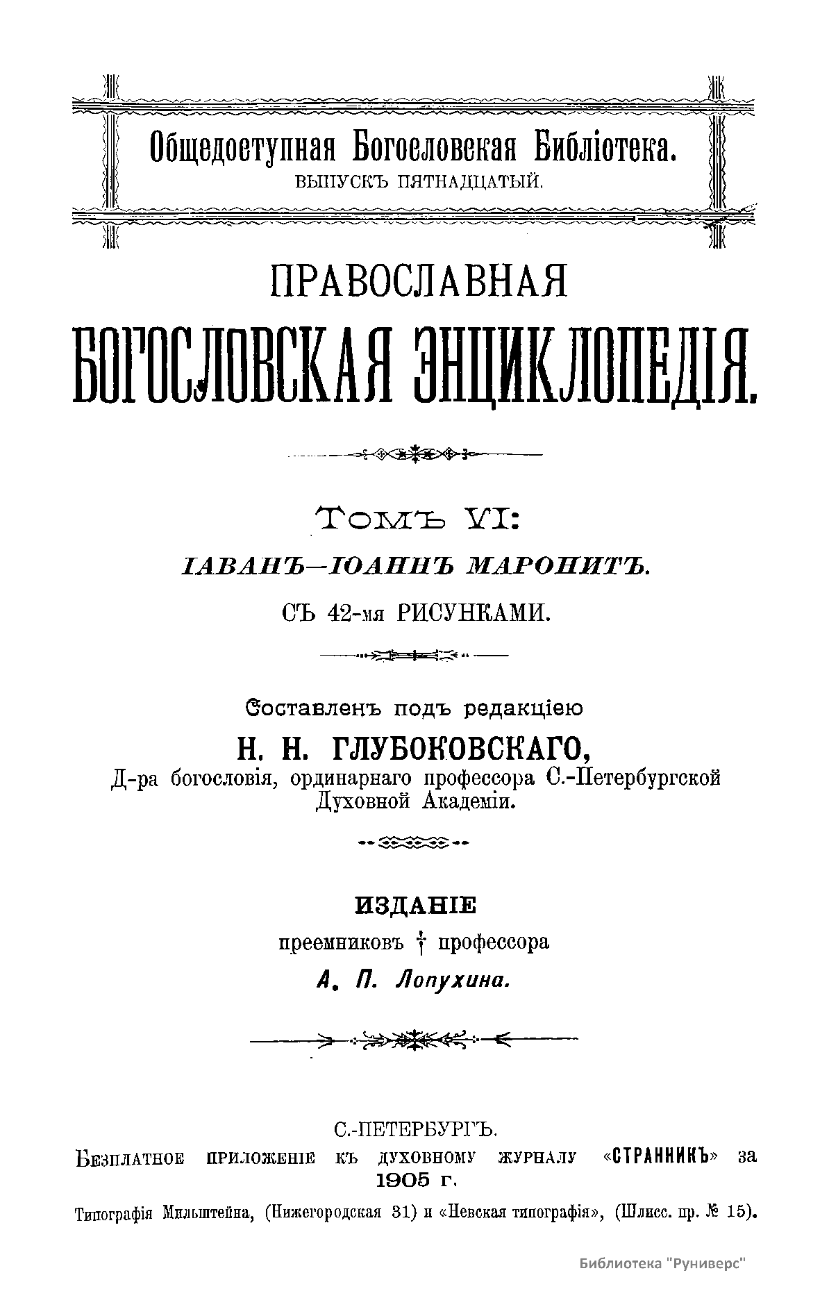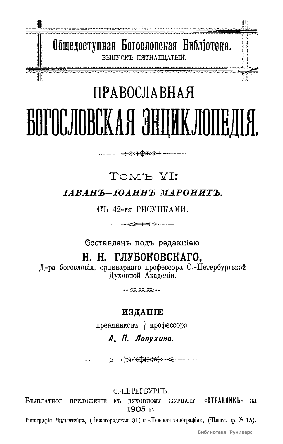 Православная богословская энциклопедiя. Томъ VI. Iаван - Iоаннъ Маронитъ