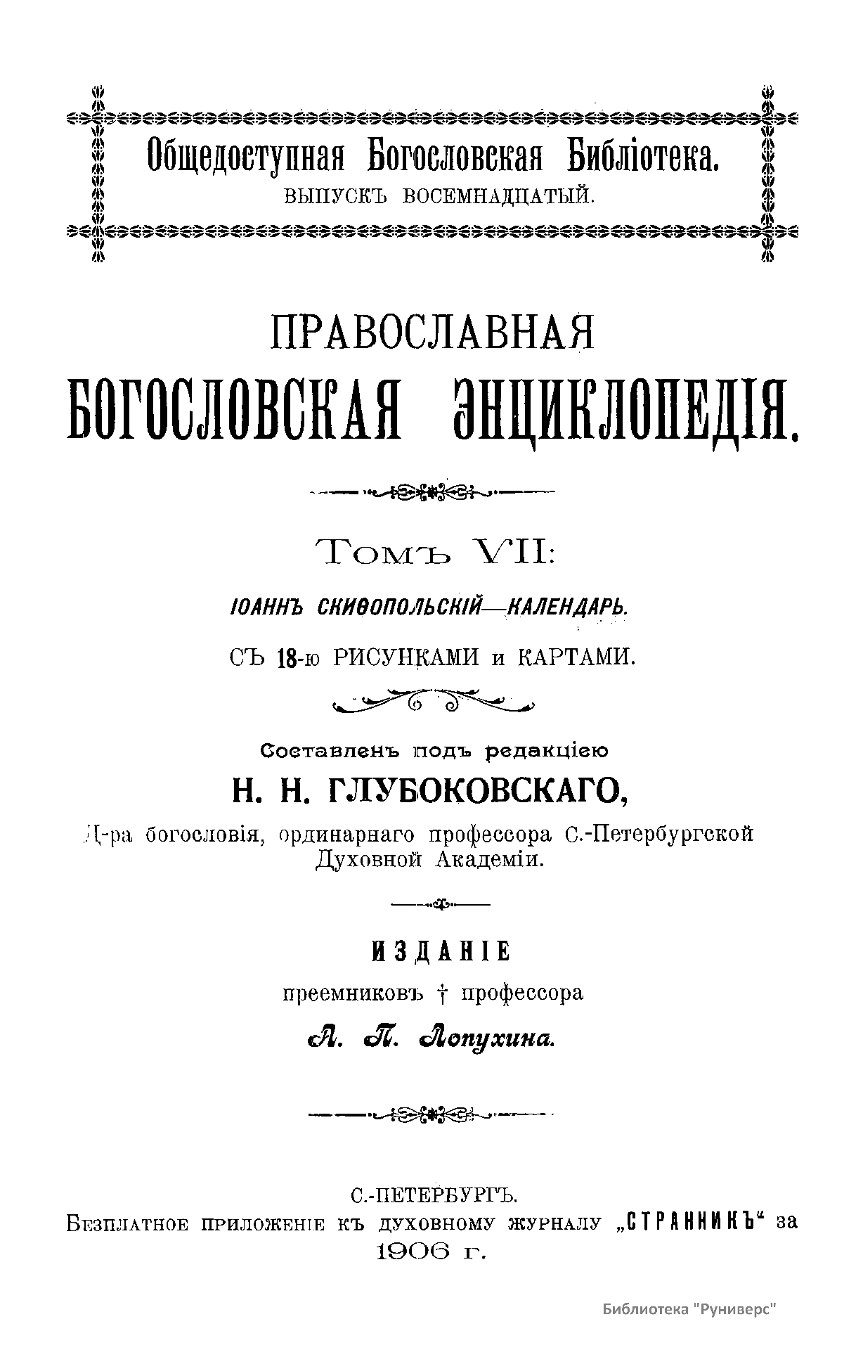 Православная богословская энциклопедiя. Томъ VII. Иоаннъ Скиѳопольскiй - Календарь