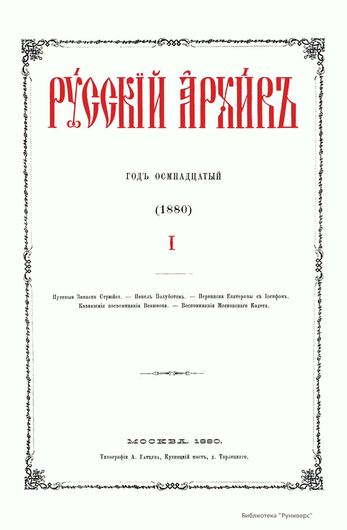 Русский архив. Историко-литературный сборник. 1880. Выпуски 1-4