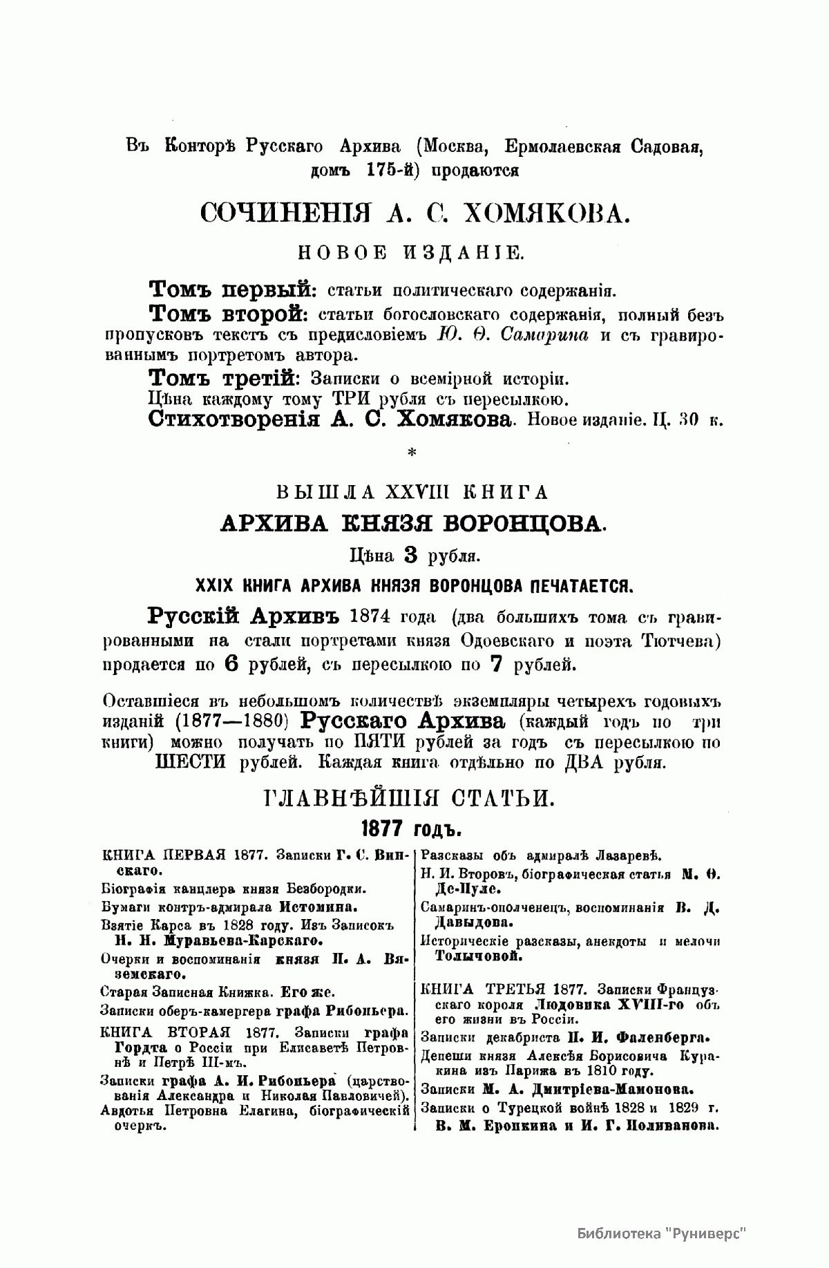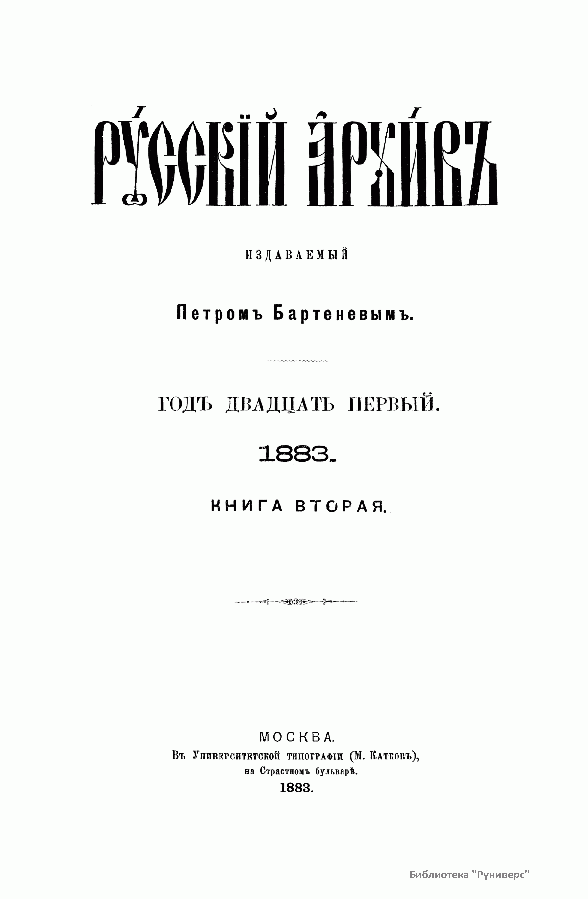 Русский архив. Историко-литературный сборник. 1883. Выпуски 3-4