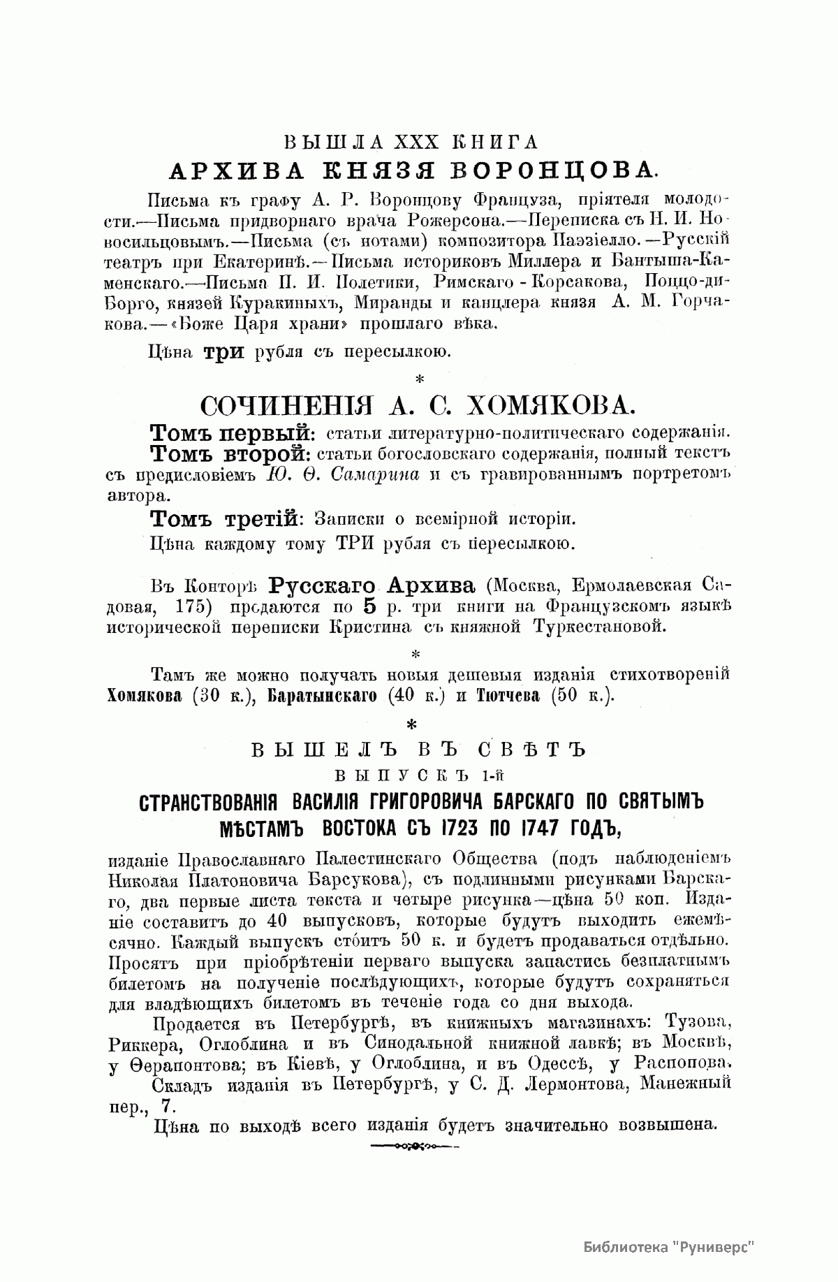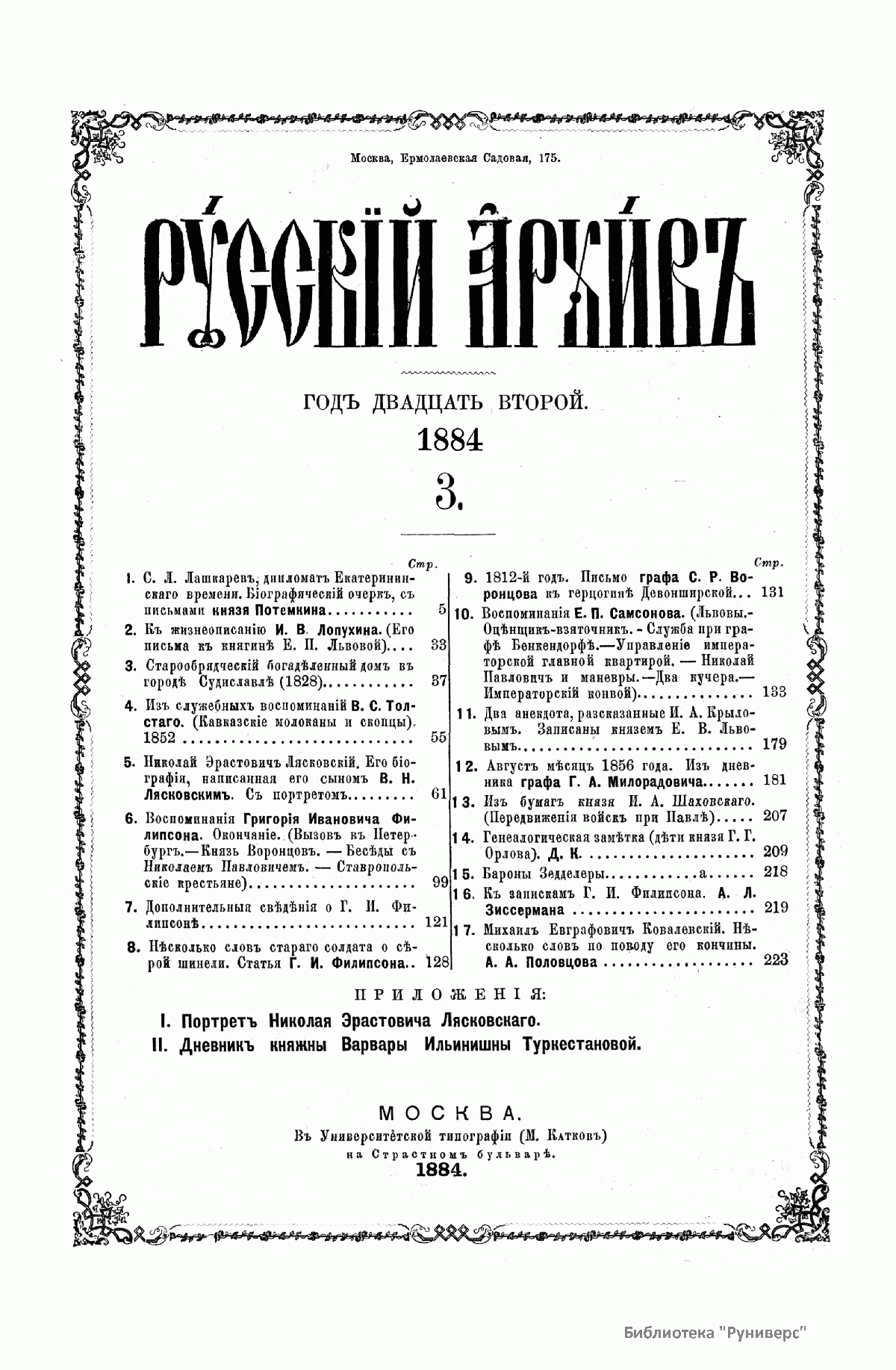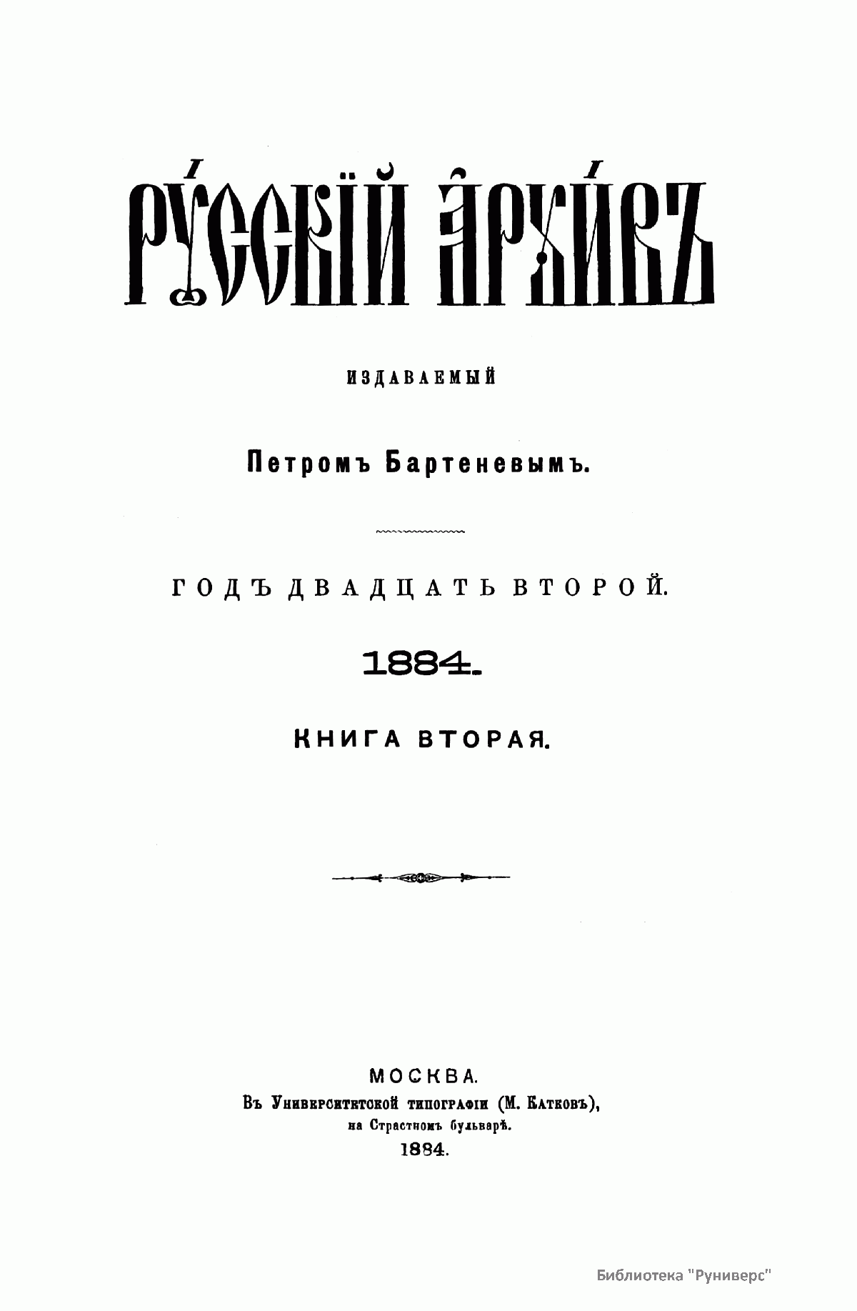 Русский архив. Историко-литературный сборник. 1884. Выпуски 3-4