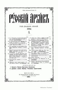 Русскiй архивъ. Историко-литературный сборникъ. 1884. Выпуски 3-4