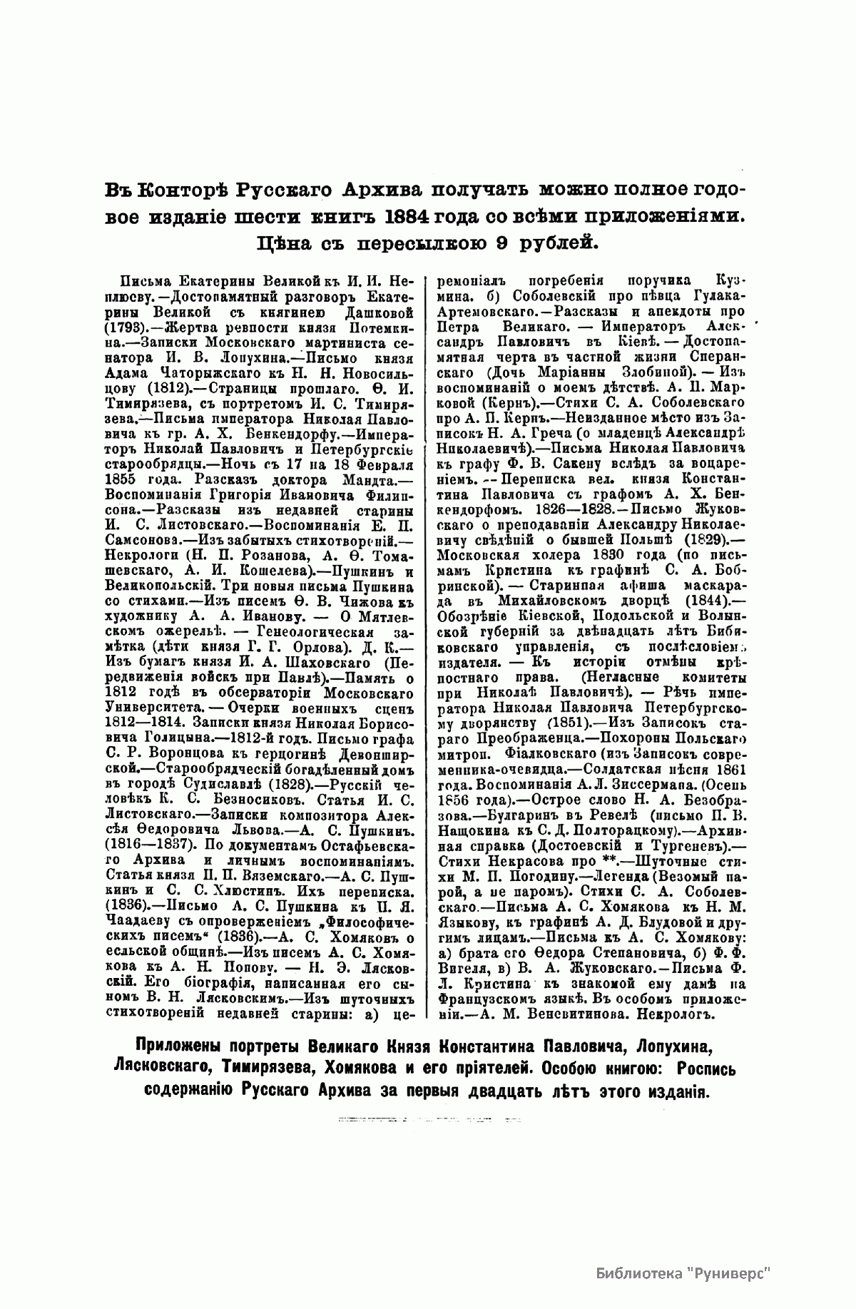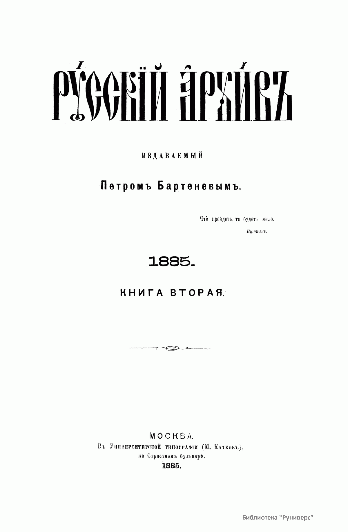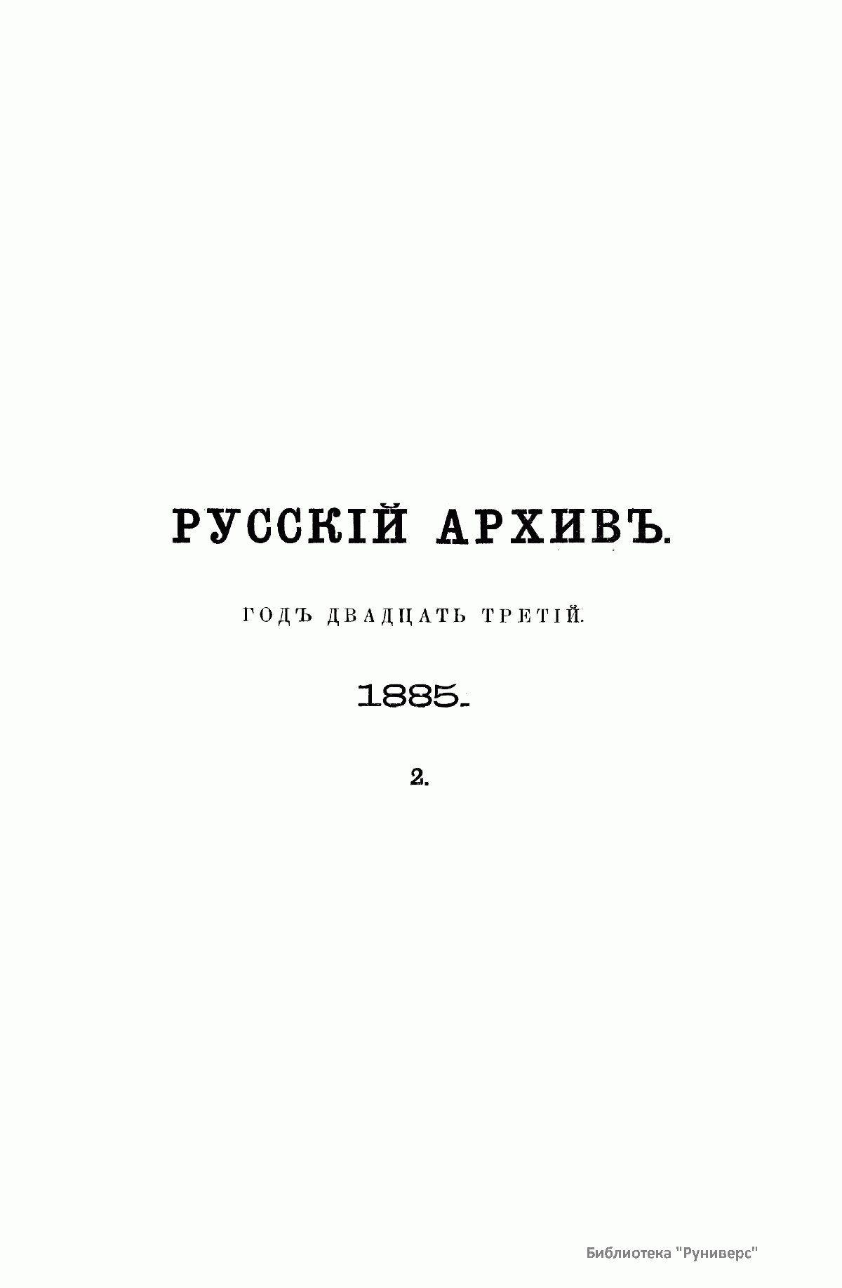 Русскiй архивъ. Историко-литературный сборникъ. 1885. Выпуски 5-8