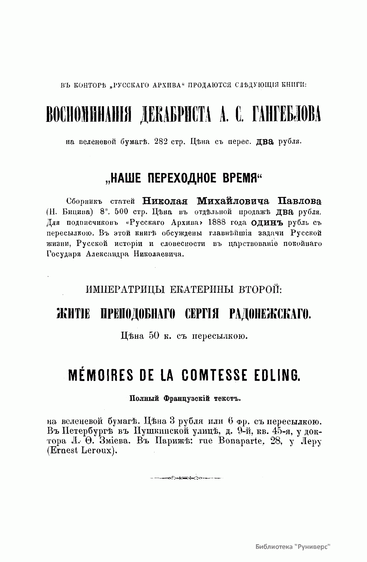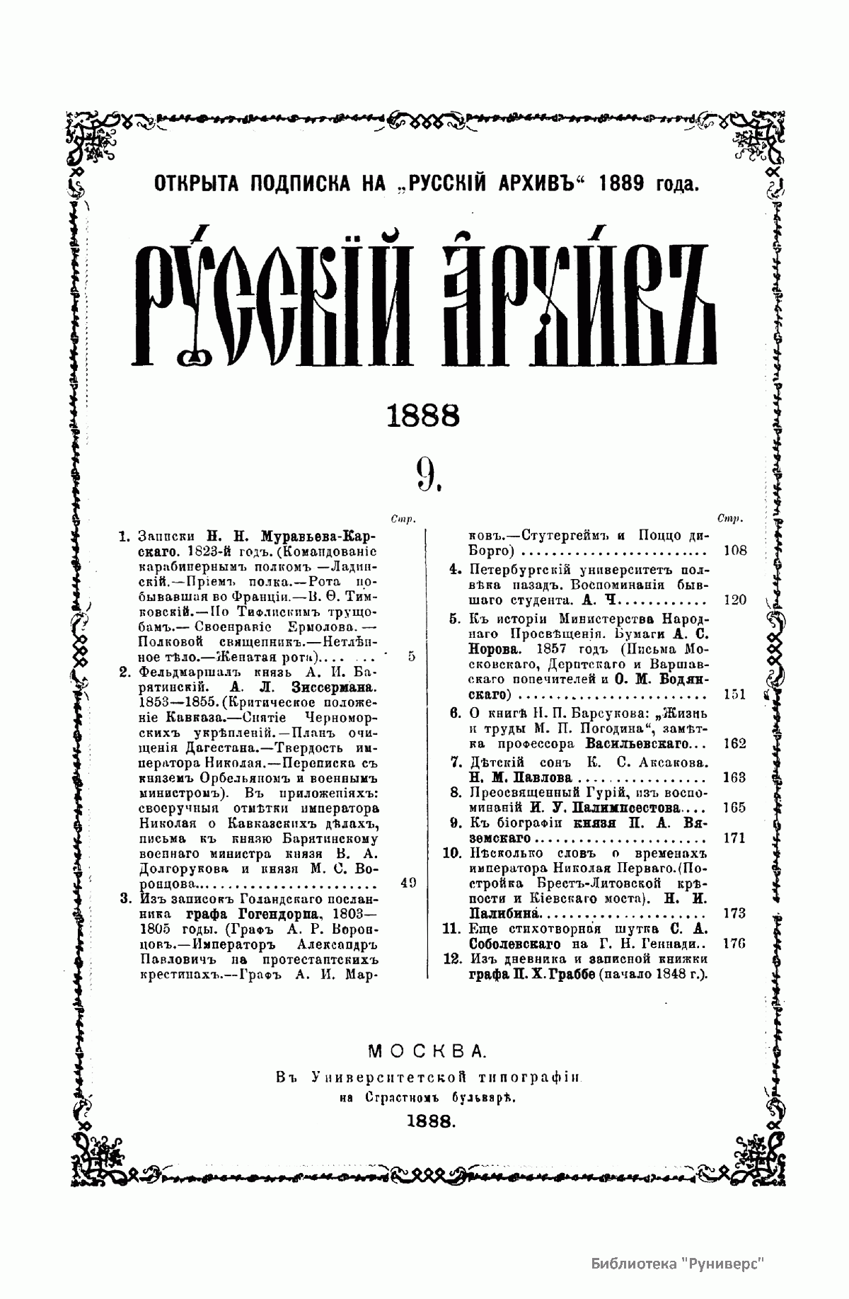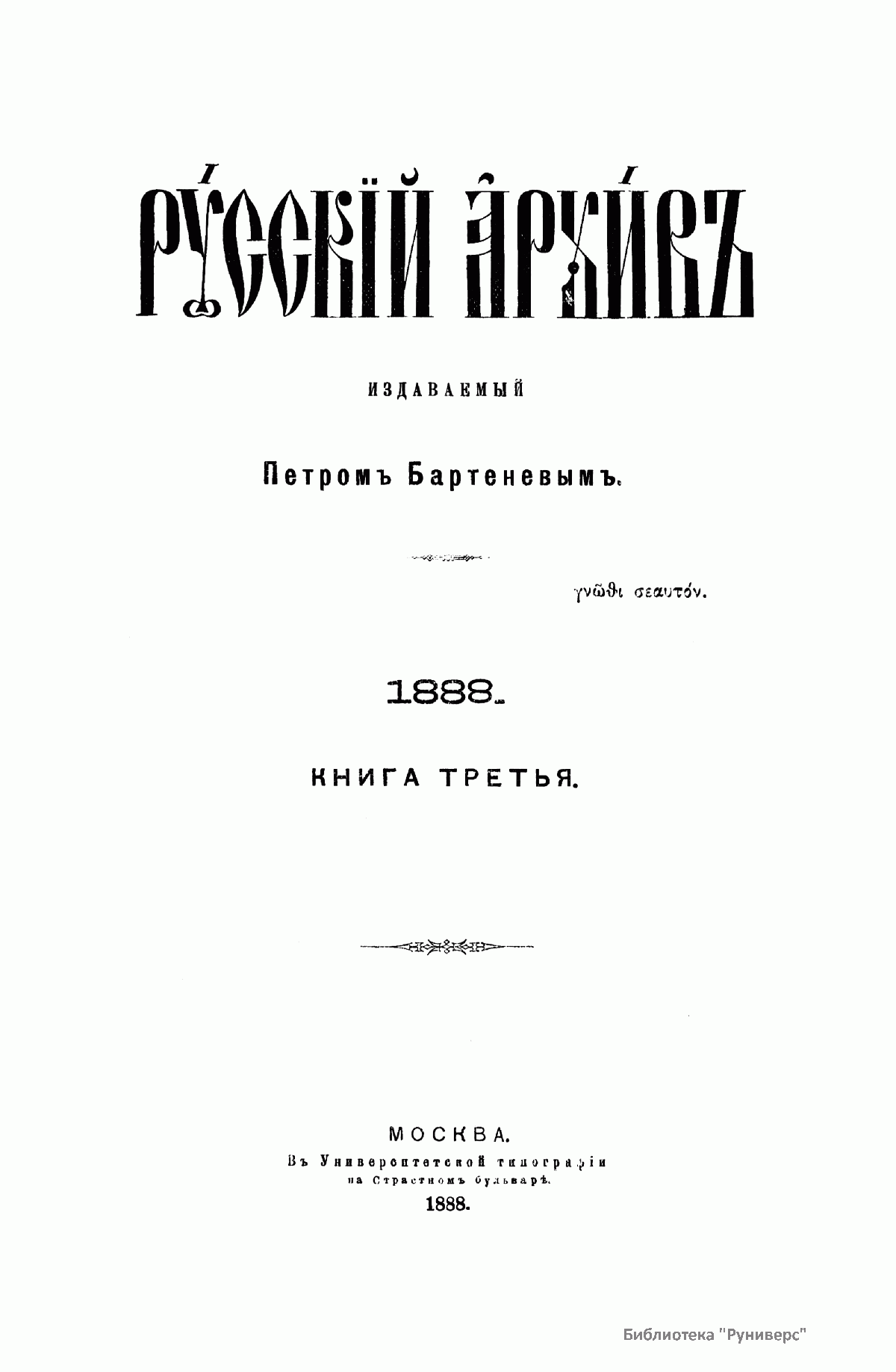 Русскiй архивъ. Историко-литературный сборникъ. 1888. Выпуски 9-12