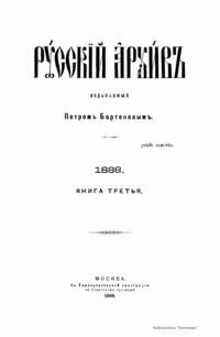 «Русский архив» — ежемесячный историко-литературный журнал, издававшийся в Москве с 1863 по 1917 год. Создателем и продолжительные годы редактором журнала был П. И. Бартенев – историк, археограф, библиограф. Этот журнал называли «живой картиной былого», поскольку он содержал преимущественно публикации неизданных мемуарных, эпистолярных, литературно-художественных и ведомственных документальных материалов, освещавших культурную и политическую историю России в XVIII и XIX вв. По числу опубликованных источников «Русский архив» стоит на первом месте среди русских исторических журналов.