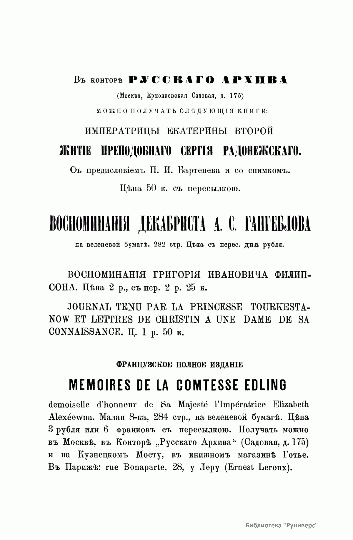 Русскiй архивъ. Историко-литературный сборникъ. 1890. Выпуски 5-8