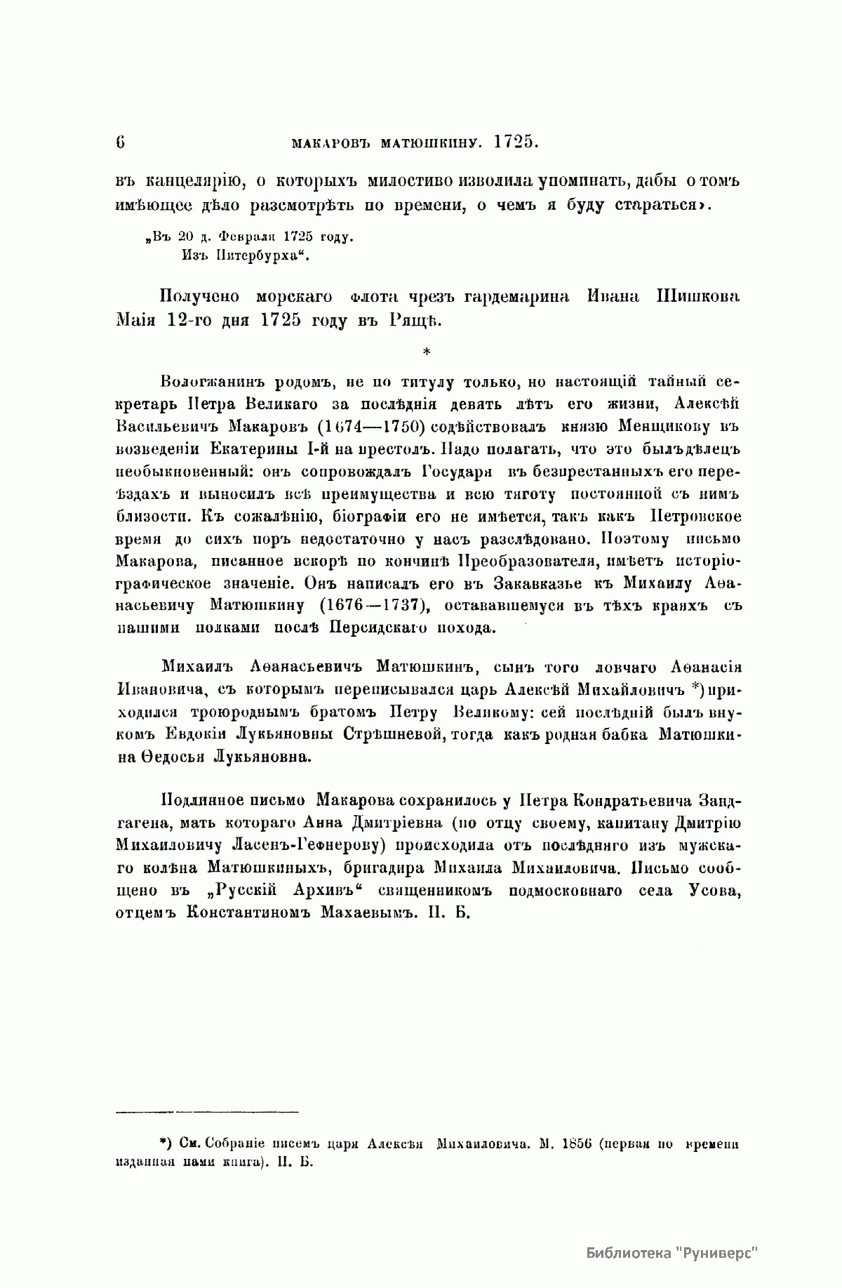 «Русский архив» — ежемесячный историко-литературный журнал, издававшийся в Москве с 1863 по 1917 год. Создателем и продолжительные годы редактором журнала был П. И. Бартенев – историк, археограф, библиограф. Этот журнал называли «живой картиной былого», поскольку он содержал преимущественно публикации неизданных мемуарных, эпистолярных, литературно-художественных и ведомственных документальных материалов, освещавших культурную и политическую историю России в XVIII и XIX вв. По числу опубликованных источников «Русский архив» стоит на первом месте среди русских исторических журналов.