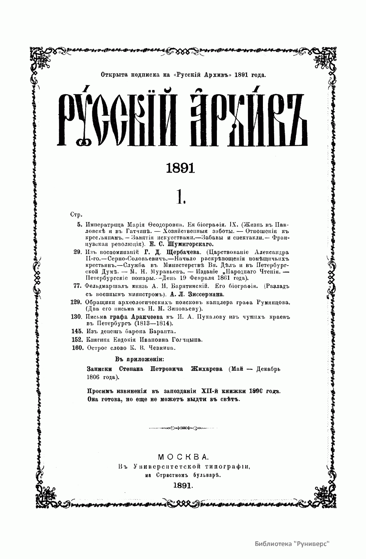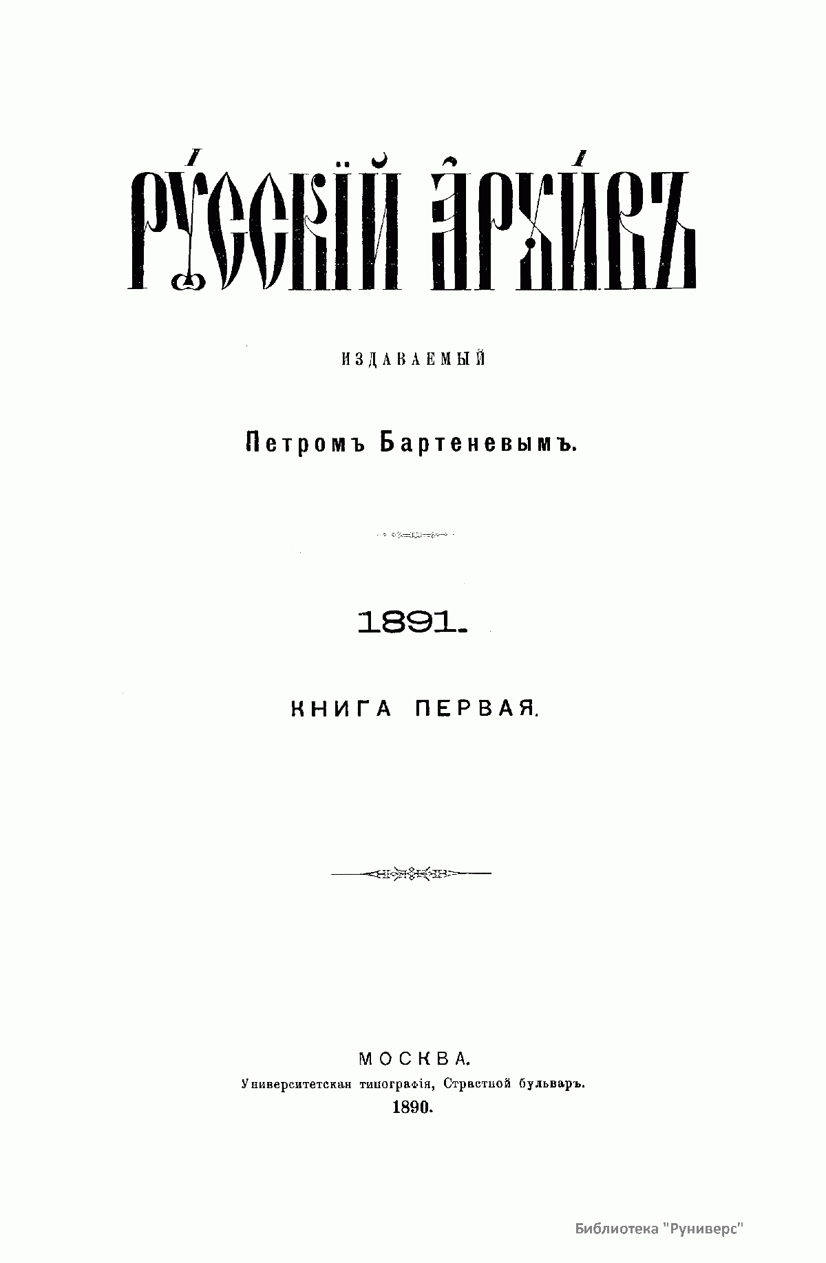 Русский архив. Историко-литературный сборник. 1891. Выпуски 1-4