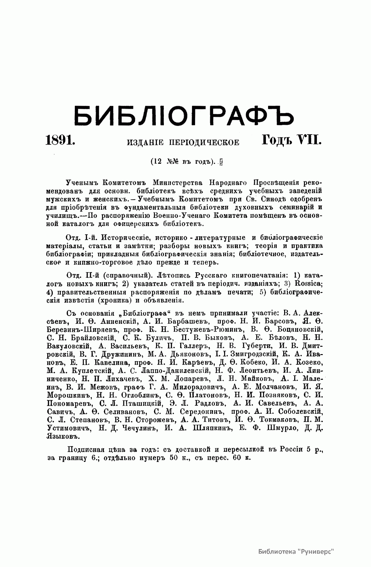 Русскiй архивъ. Историко-литературный сборникъ. 1891. Выпуски 1-4