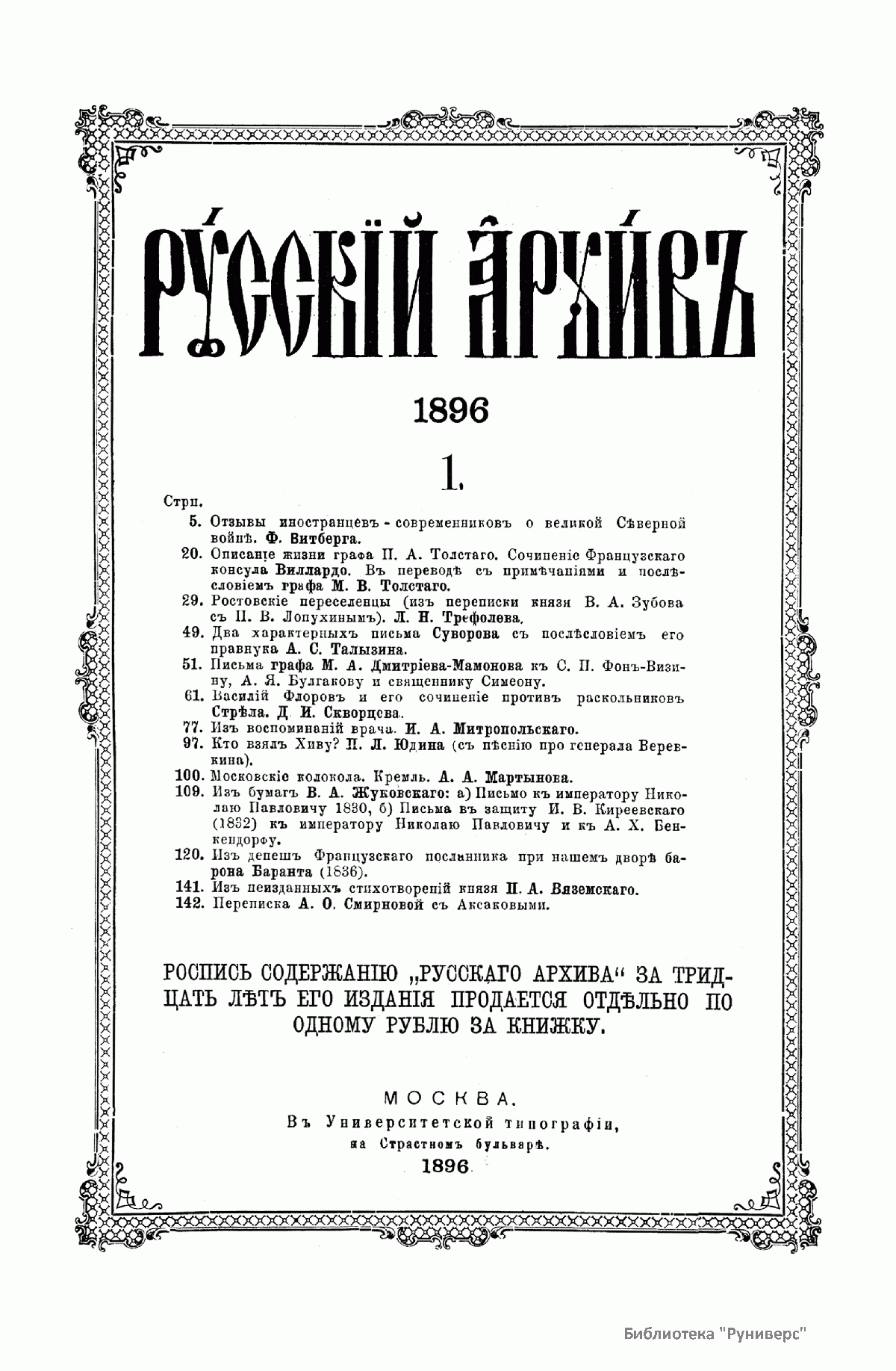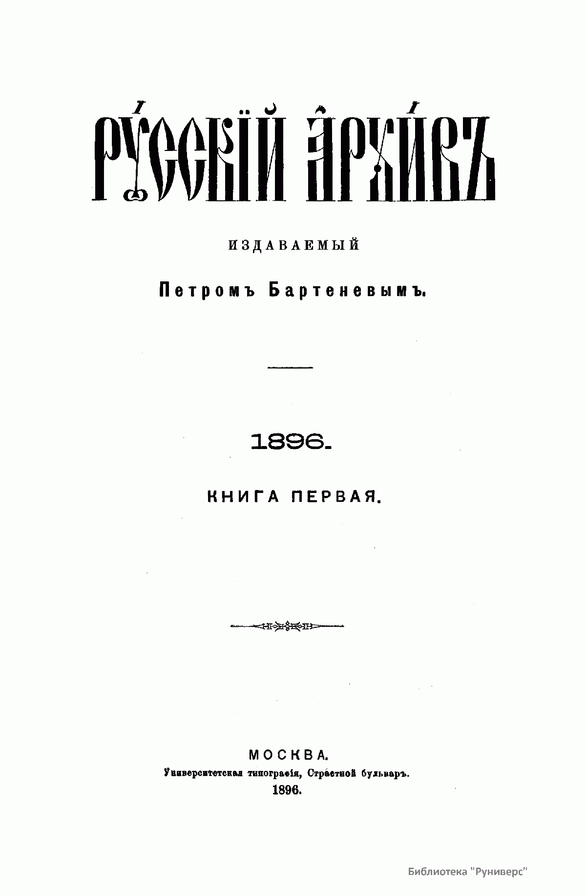 Русский архив. Историко-литературный сборник. 1896. Выпуски 1-4