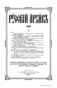 «Русский архив» — ежемесячный историко-литературный журнал, издававшийся в Москве с 1863 по 1917 год. Создателем и продолжительные годы редактором журнала был П. И. Бартенев – историк, археограф, библиограф. Этот журнал называли «живой картиной былого», поскольку он содержал преимущественно публикации неизданных мемуарных, эпистолярных, литературно-художественных и ведомственных документальных материалов, освещавших культурную и политическую историю России в XVIII и XIX вв. По числу опубликованных источников «Русский архив» стоит на первом месте среди русских исторических журналов.