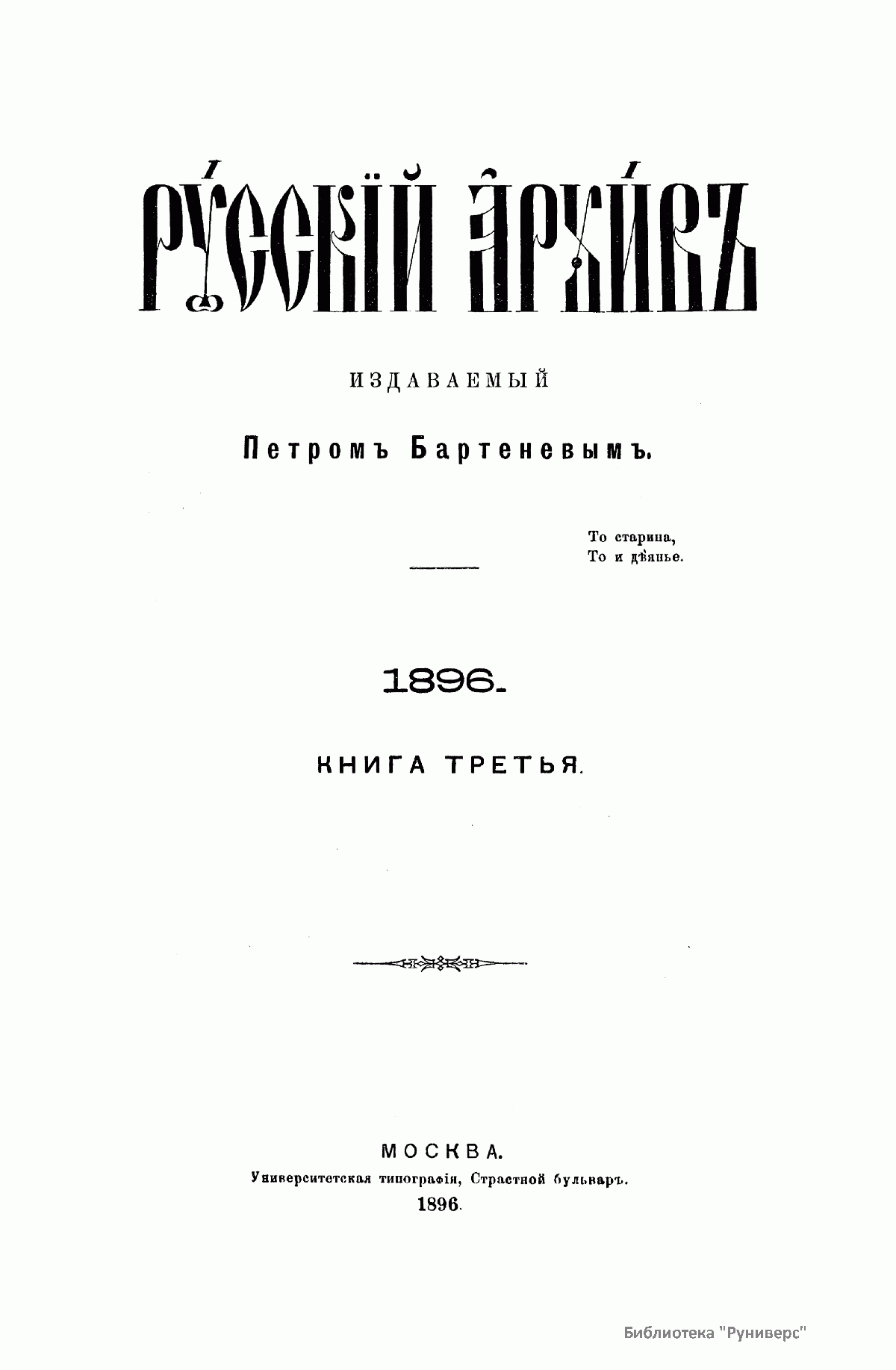 Русский архив. Историко-литературный сборник. 1896. Выпуски 9-12