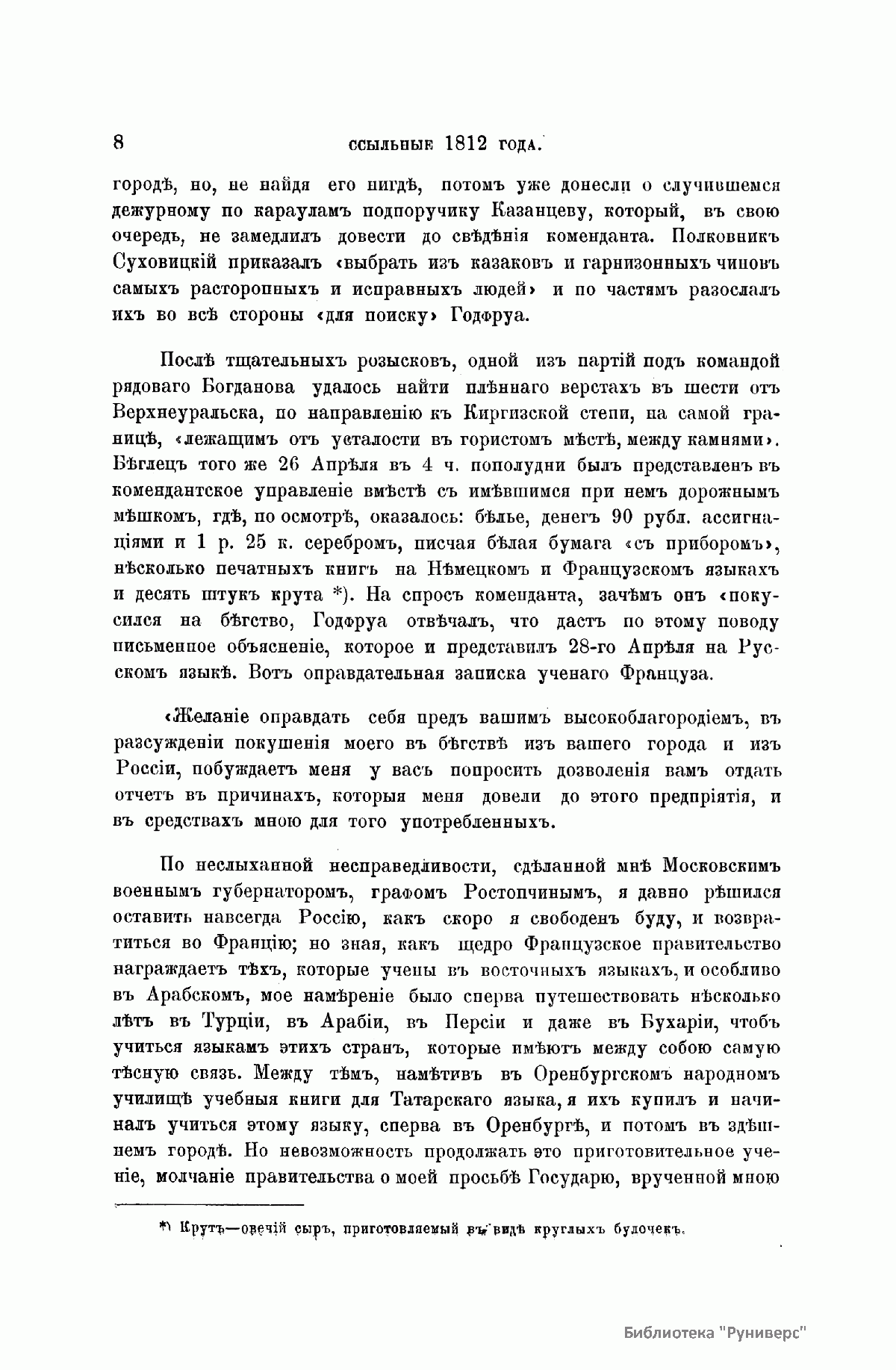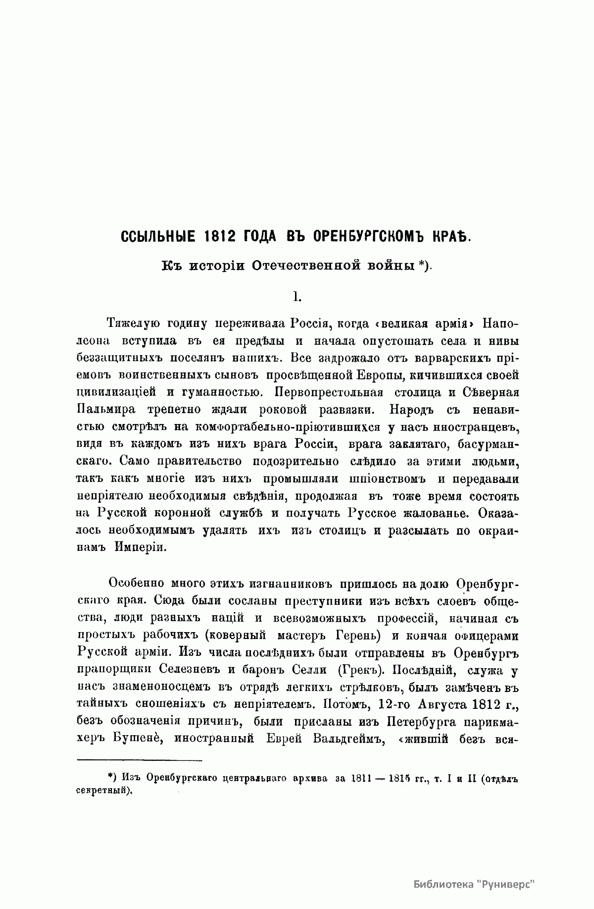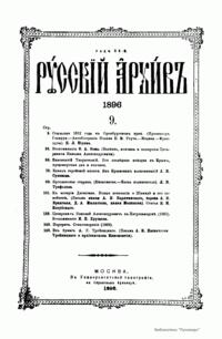 «Русский архив» — ежемесячный историко-литературный журнал, издававшийся в Москве с 1863 по 1917 год. Создателем и продолжительные годы редактором журнала был П. И. Бартенев – историк, археограф, библиограф. Этот журнал называли «живой картиной былого», поскольку он содержал преимущественно публикации неизданных мемуарных, эпистолярных, литературно-художественных и ведомственных документальных материалов, освещавших культурную и политическую историю России в XVIII и XIX вв. По числу опубликованных источников «Русский архив» стоит на первом месте среди русских исторических журналов.