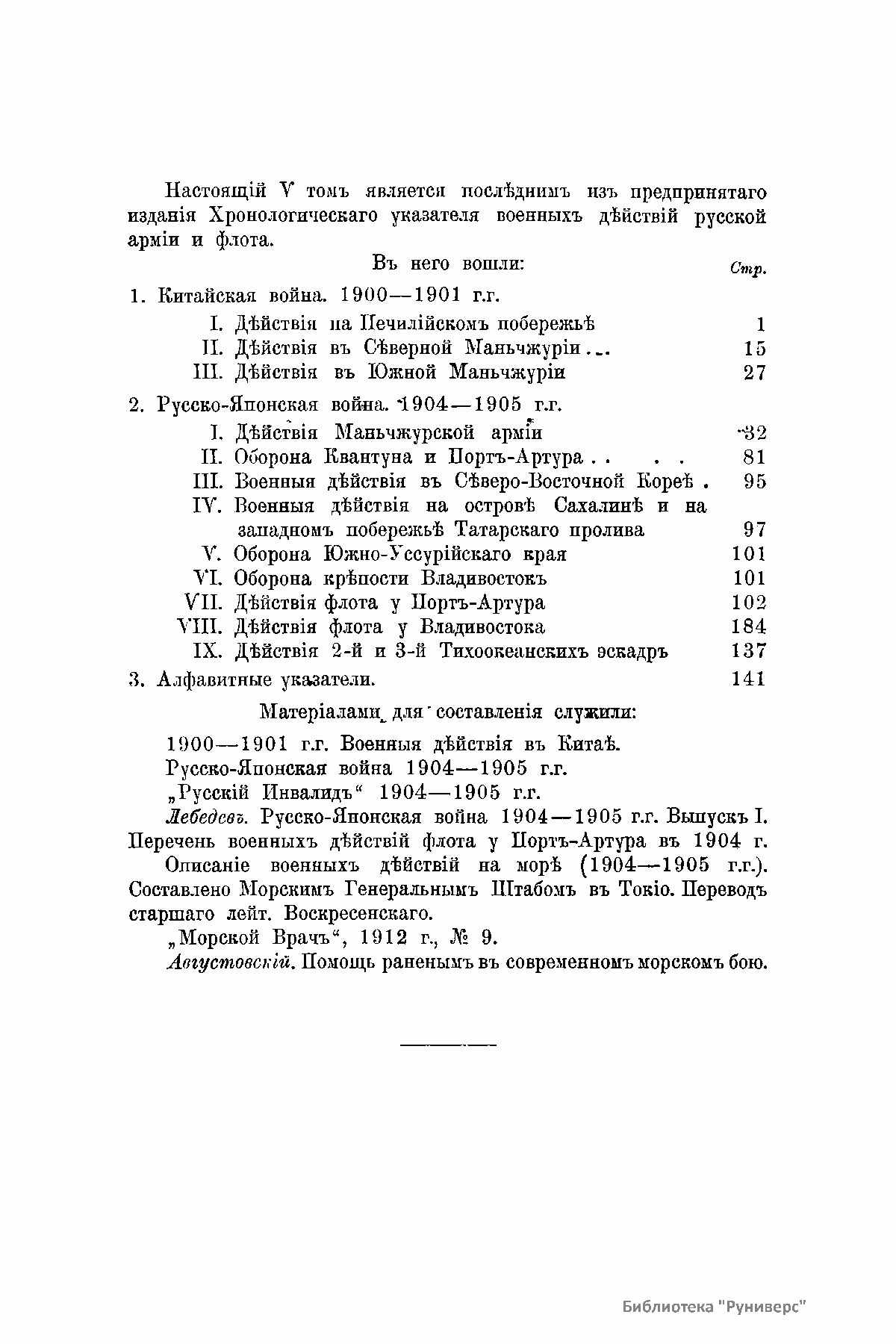Хронологический указатель военных действий русской армии и флота. Том V. 1900-1905 гг.