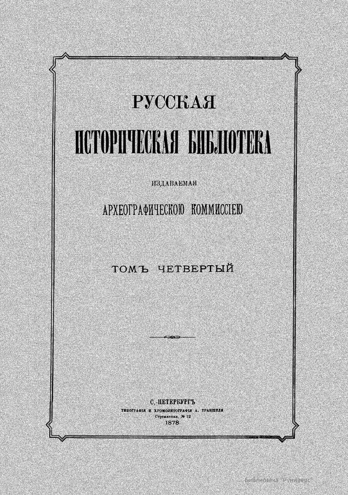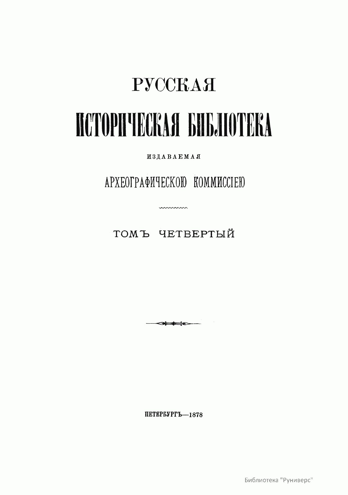 Русская историческая библiотека, издаваемая Археографическою комиссiею. Томъ четвертый