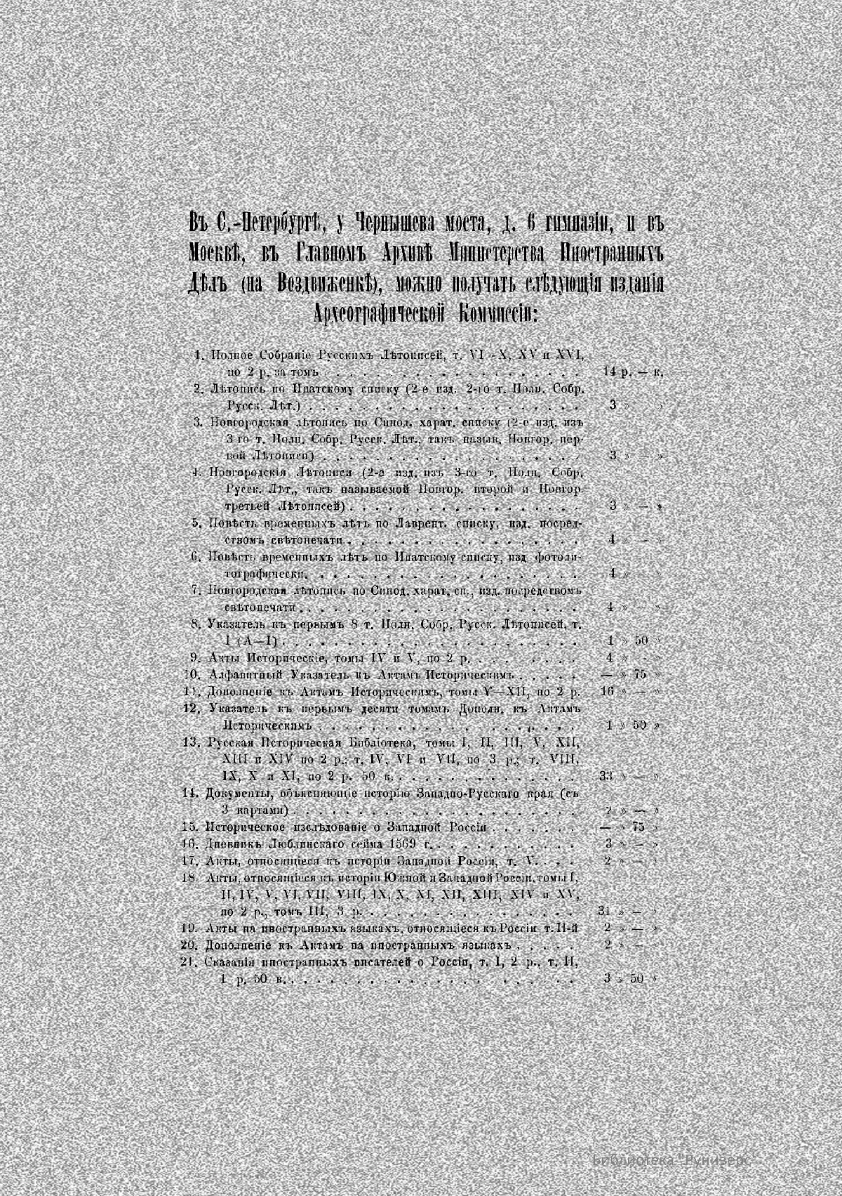 , Аввакума. Подготовку и редактирование материалов при составлении библиотеки осуществляли видные русские историки и археографы: А. П. Барсуков, С. А. Белокуров, И. А. Бычков, С. Б. Веселовский, В. Г. Дружинин,