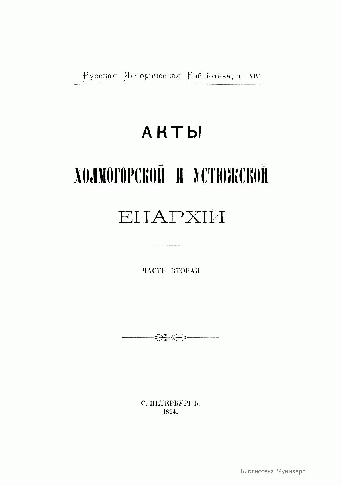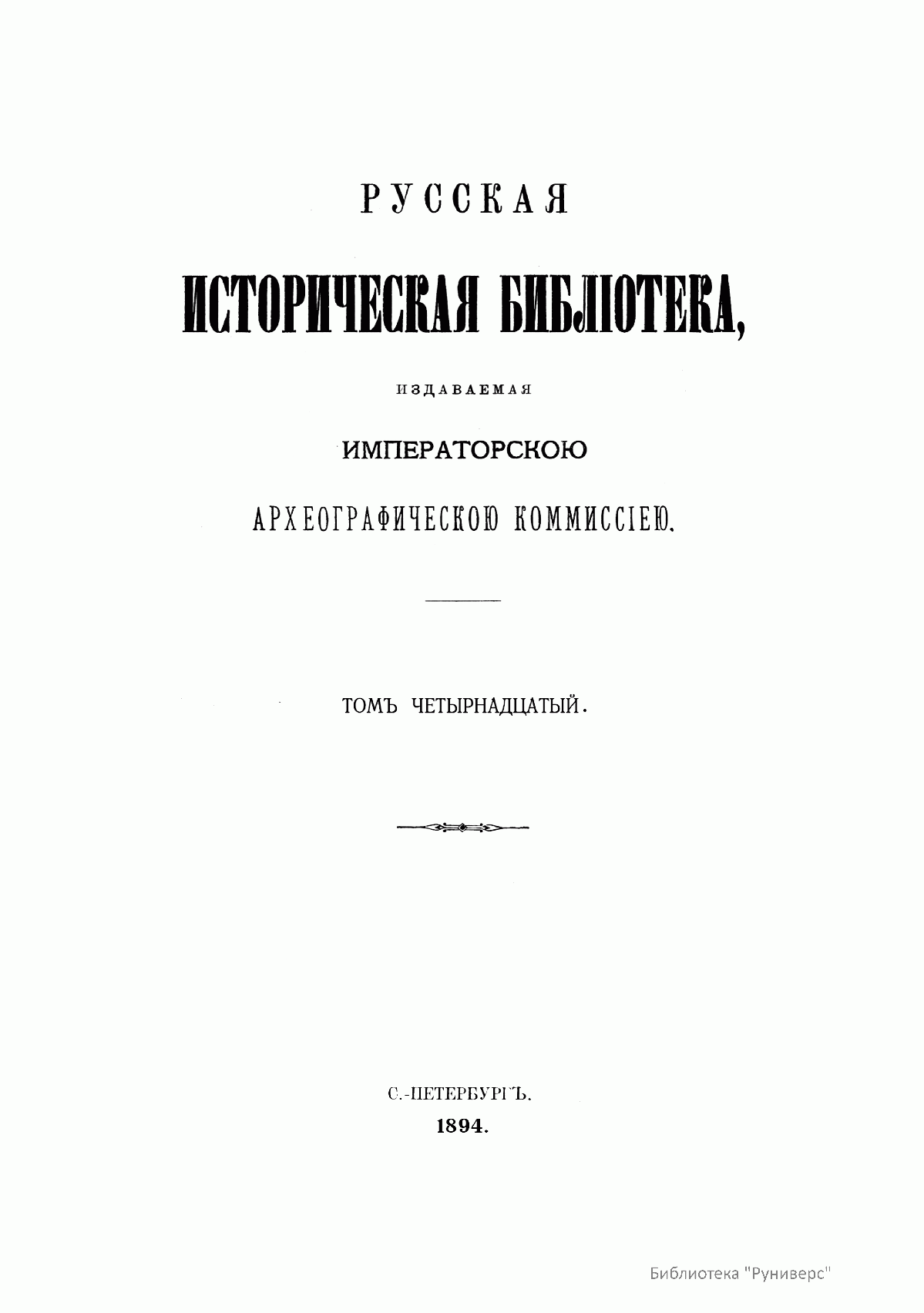 Русская историческая библiотека, издаваемая Археографическою комиссiею. Томъ четырнадцатый