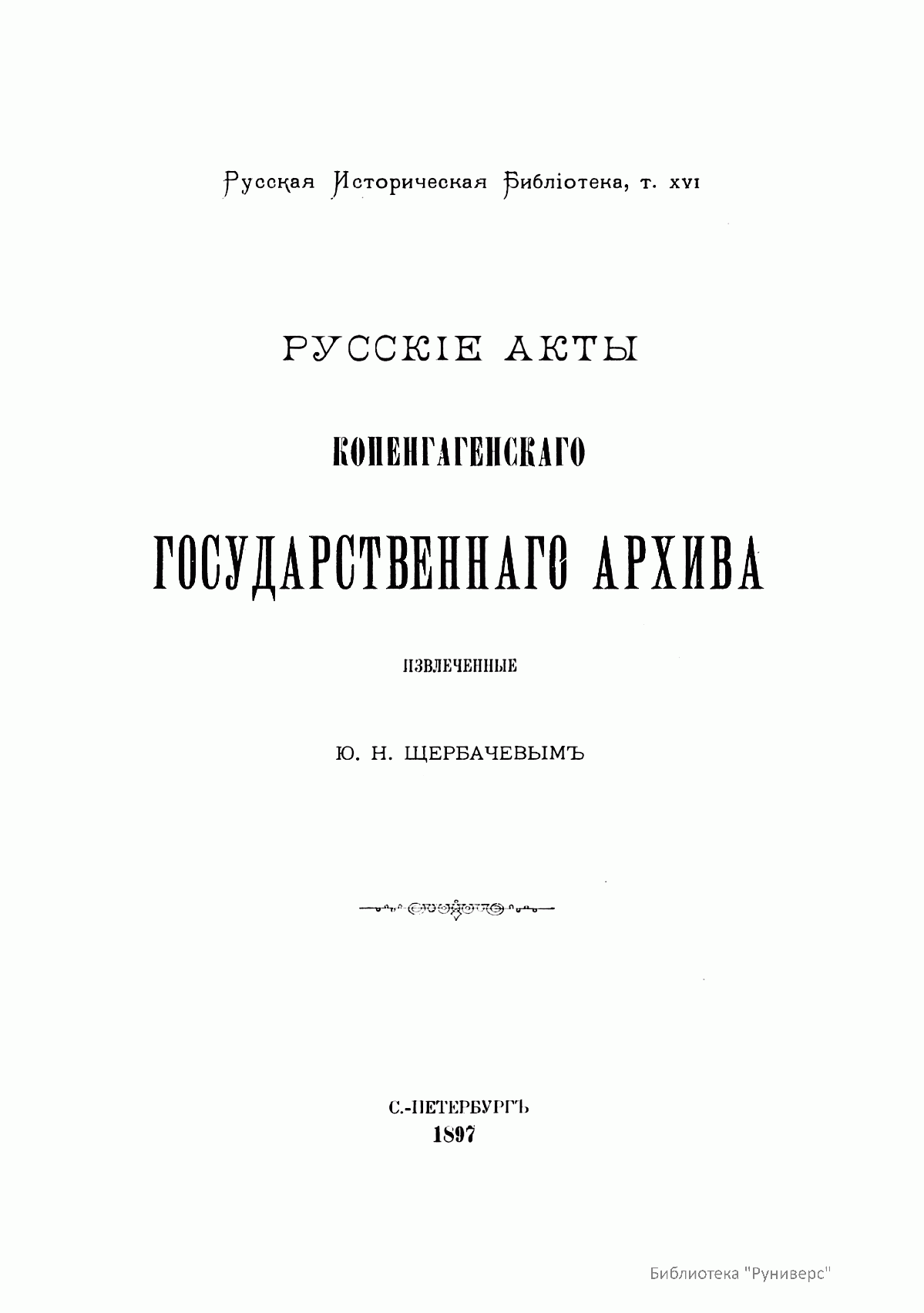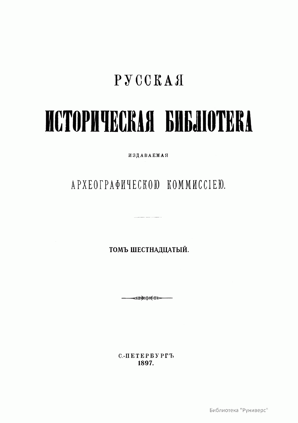 Русская историческая библiотека, издаваемая Археографическою комиссiею. Томъ шестнадцатый
