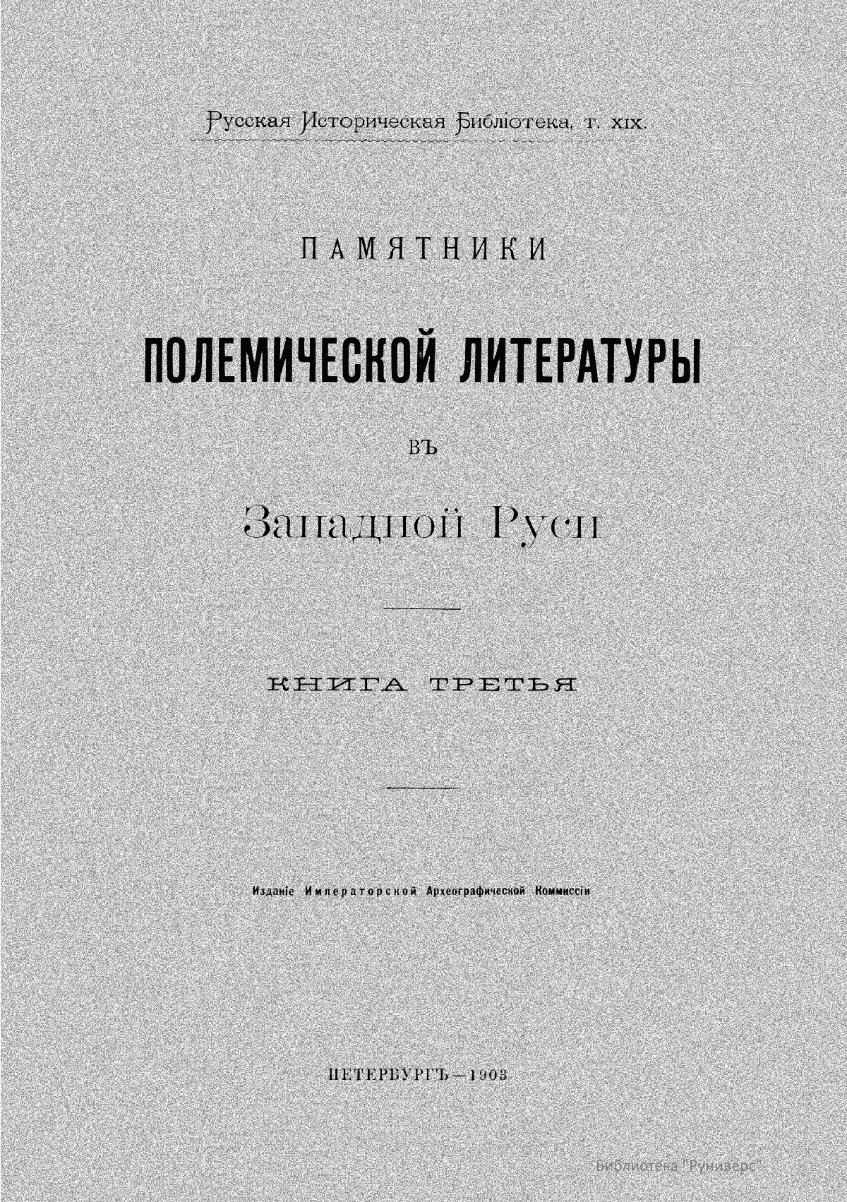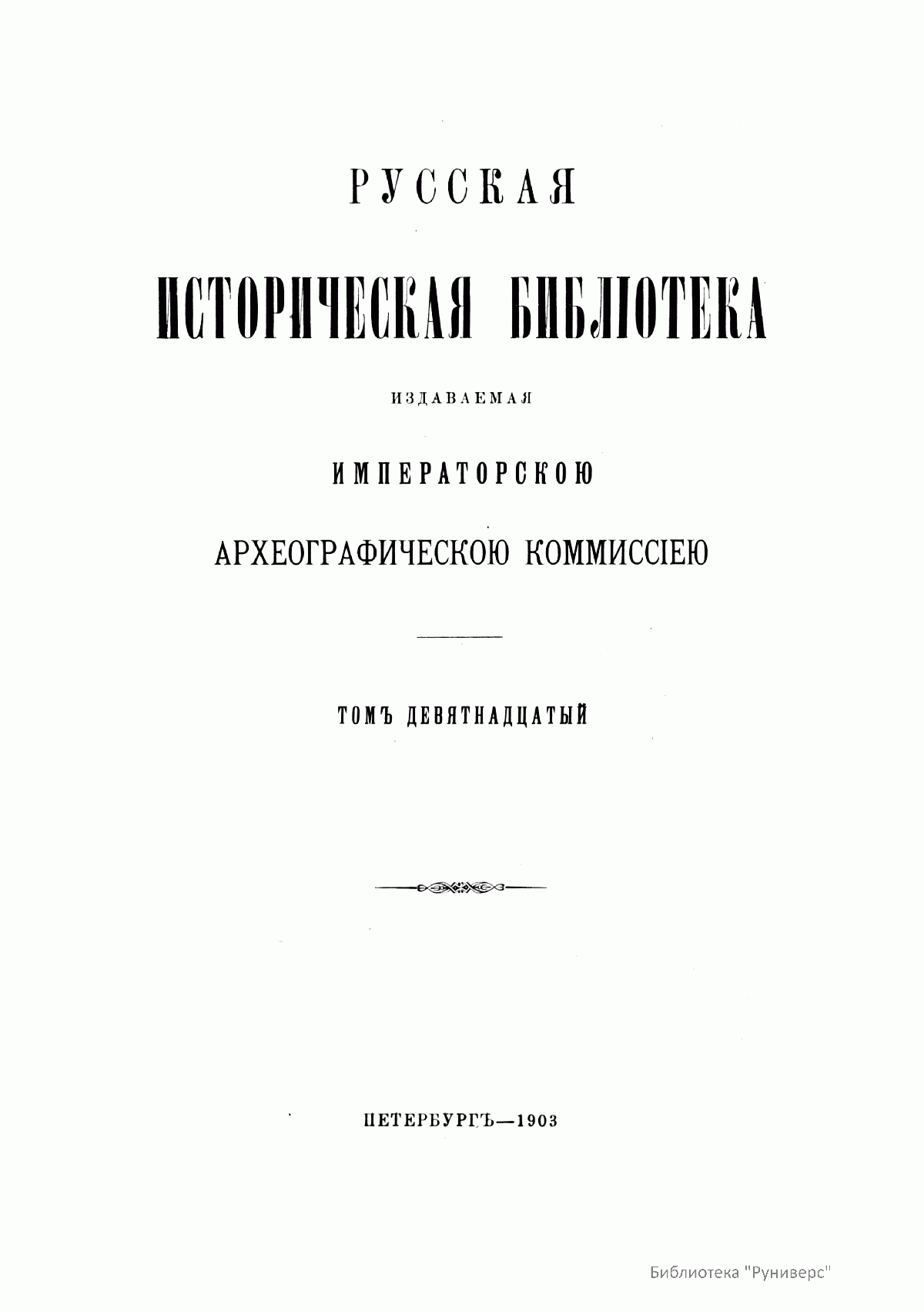 Русская историческая библiотека, издаваемая Археографическою комиссiею. Томъ девятнадцатый