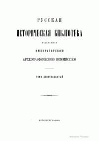 Русская историческая библиотека, издаваемая Археографической комиссией. Том девятнадцатый