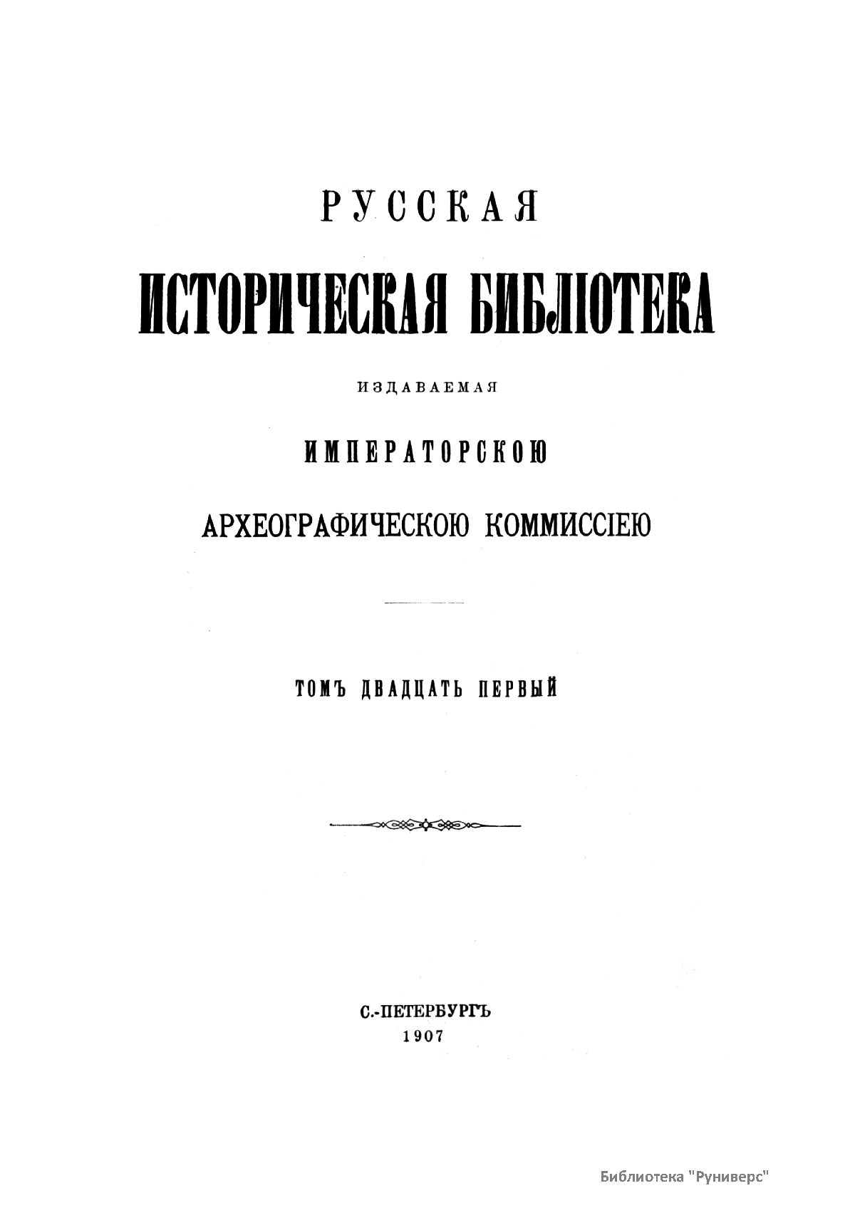 Русская историческая библиотека, издаваемая Археографической комиссией. Том двадцать первый