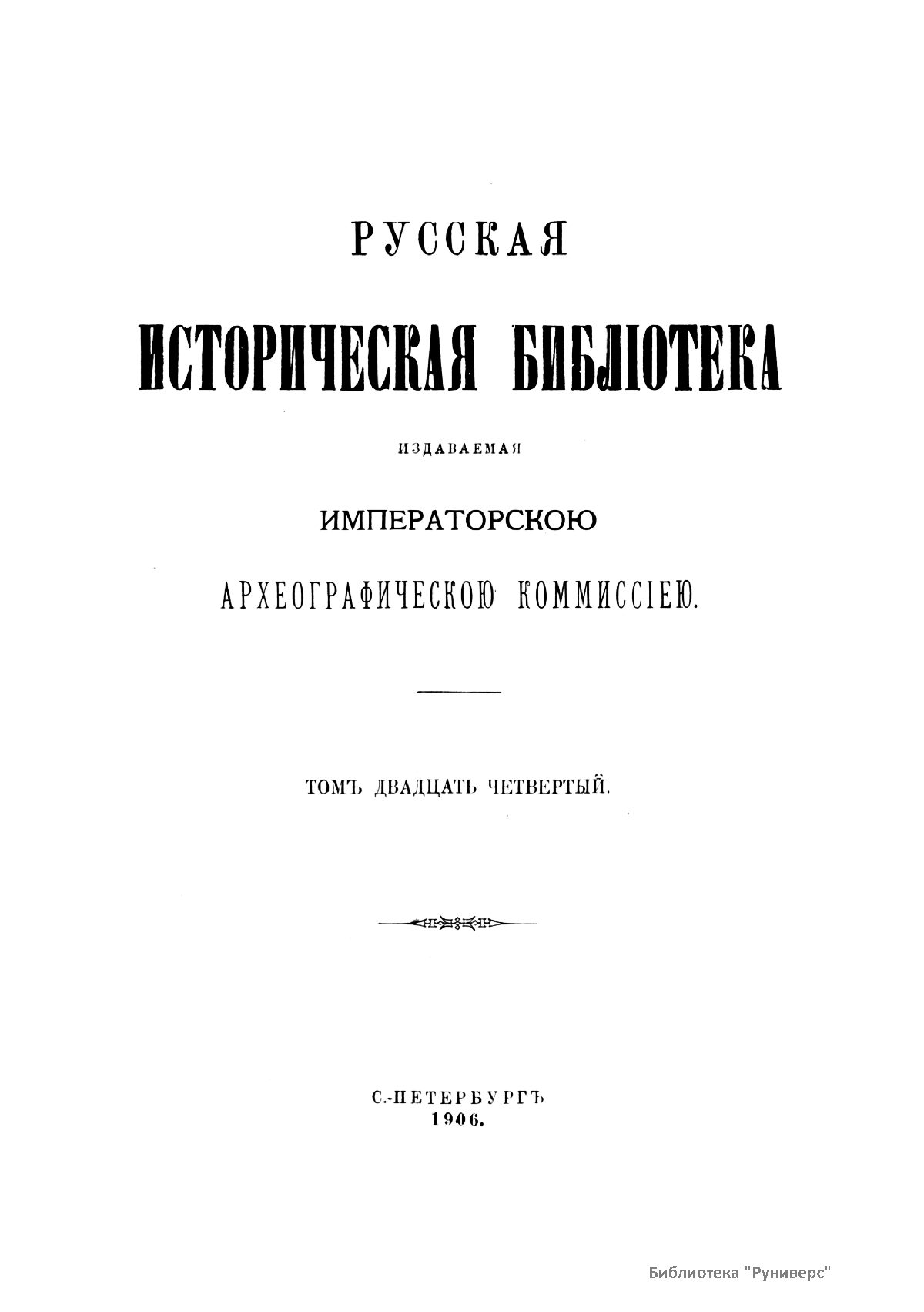 Русская историческая библиотека, издаваемая Археографической комиссией. Том двадцать четвертый