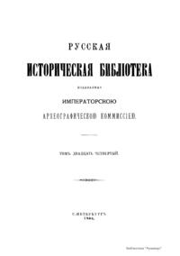 Русская историческая библiотека, издаваемая Археографическою комиссiею. Томъ двадцать четвертый