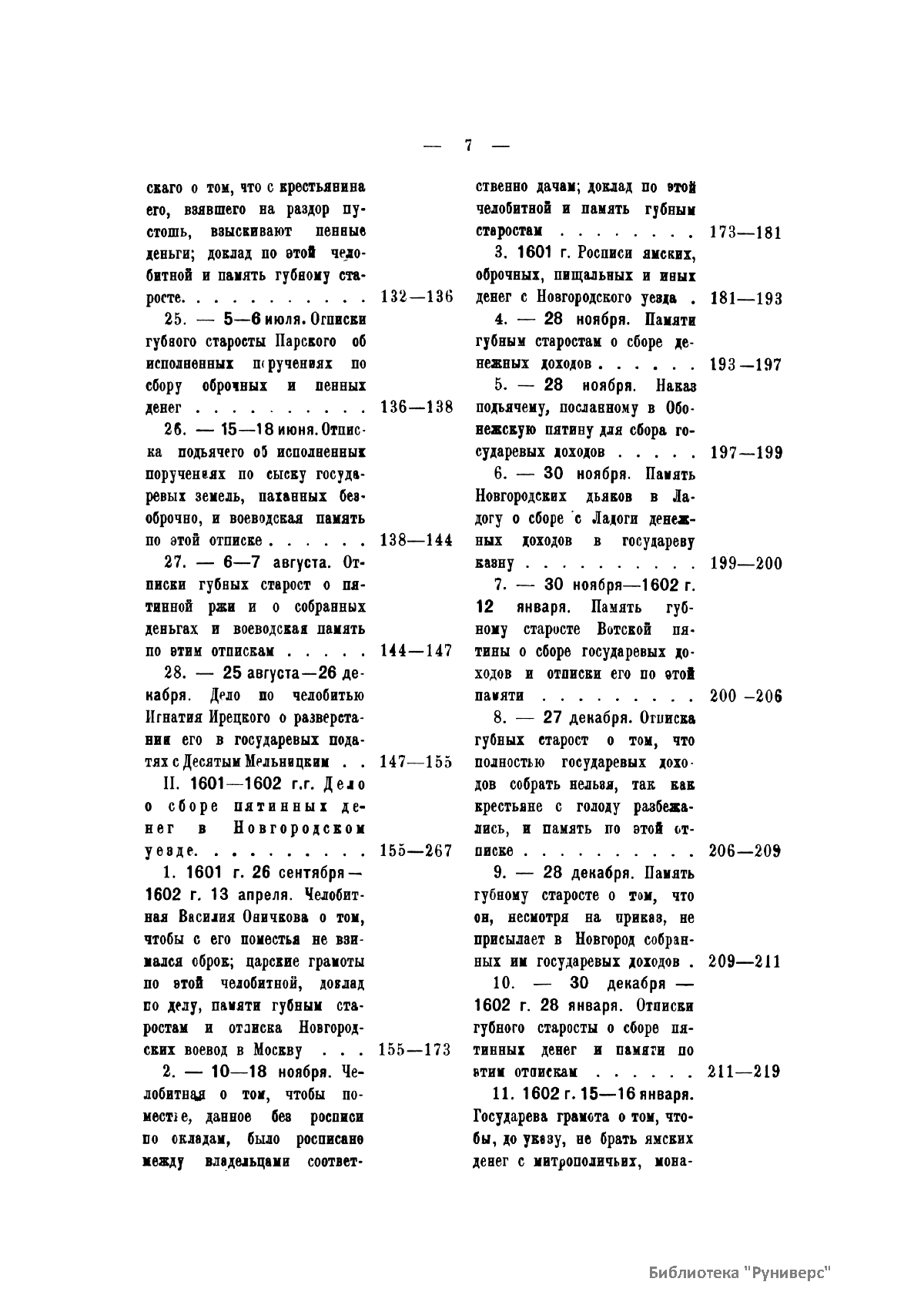 Указатель, дополнение и примечания к VII тому Русской исторической библиотеки