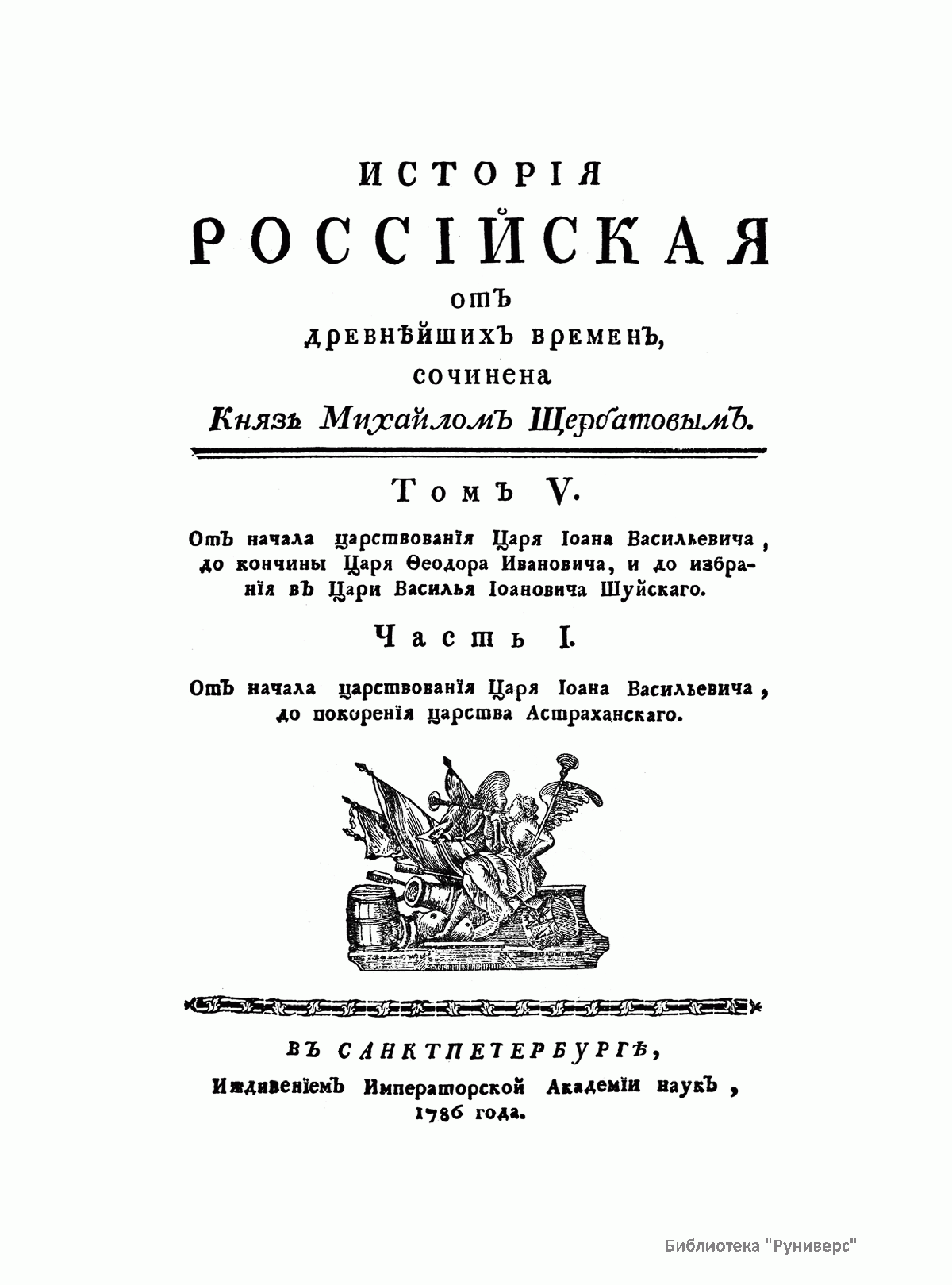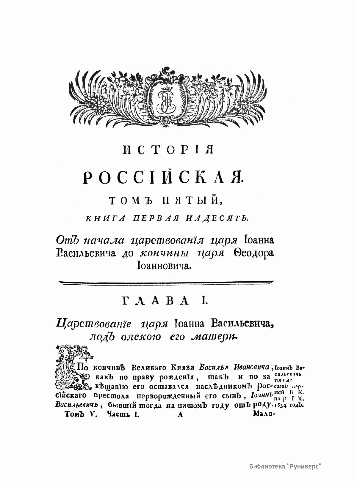 Исторiя россiйская отъ древнѣйшихъ времянъ. Томъ V. Часть I