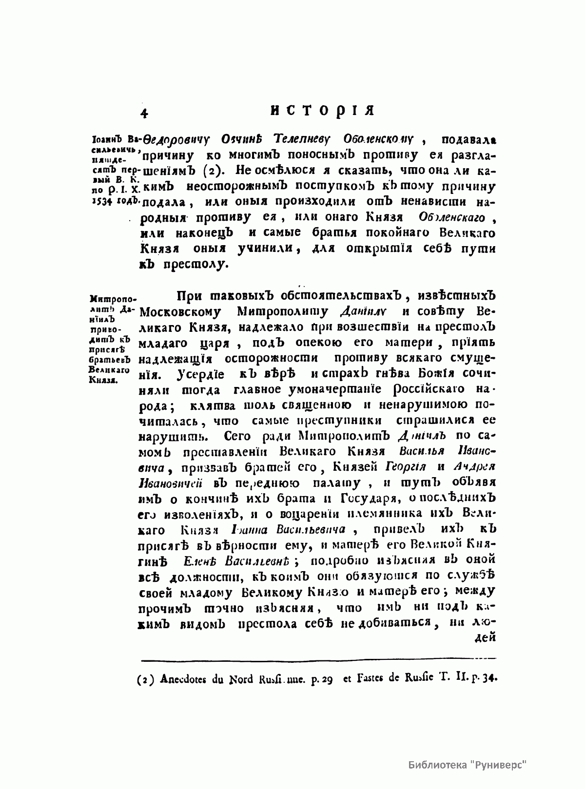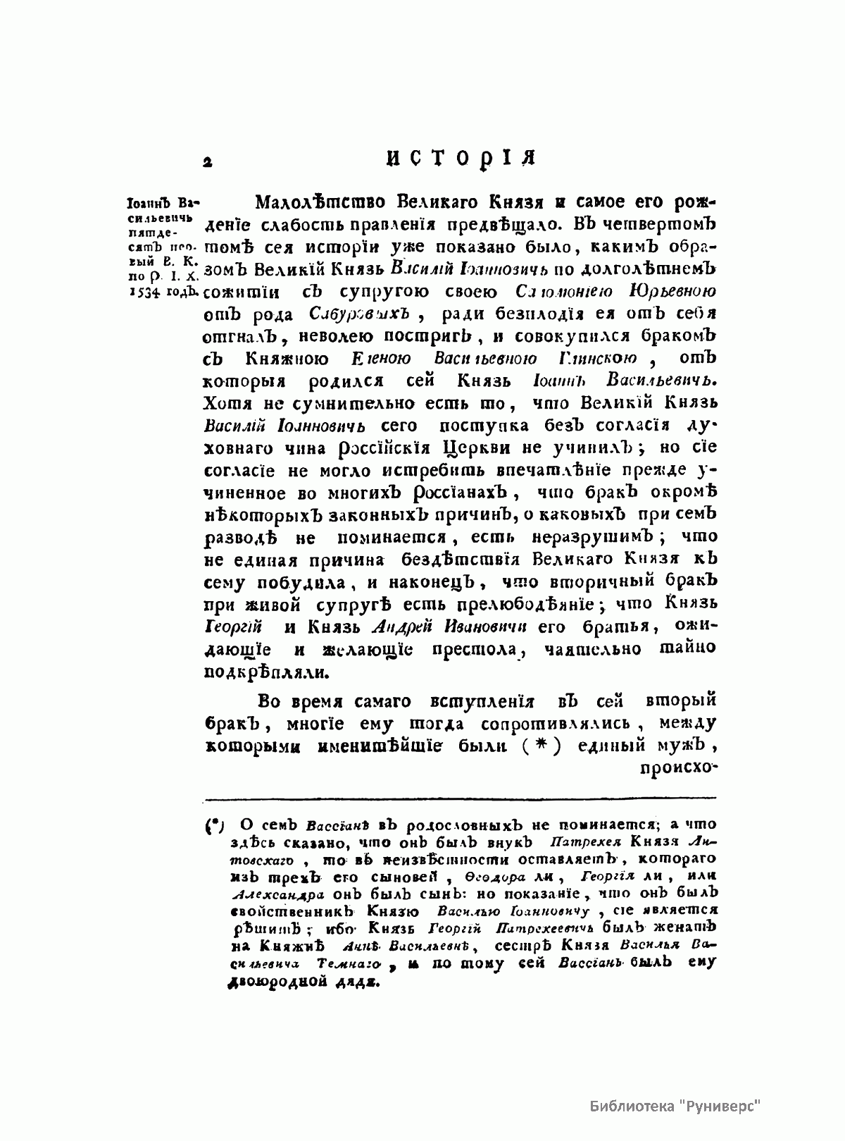 Главным трудом жизни князя М. М. Щербатова (1733–1790) стала «История Российская с древнейших времен», к написанию которой Щербатов приступил по поручению