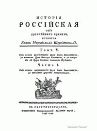(также князю доверили разобрать и систематизировать архив Петра I). Начиная с 1770 г. вышло 7 томов, охватывающих историю России с древнейших времен до 1610 г. Следуя за идеями французских просветителей, Щербатов не только описывал действия исторических личностей, но и указывал, что за их поступками кроются определенные мысли, идеи, нравы, господствующие в обществе. И это было новым по отношению к предшествующей историографии.