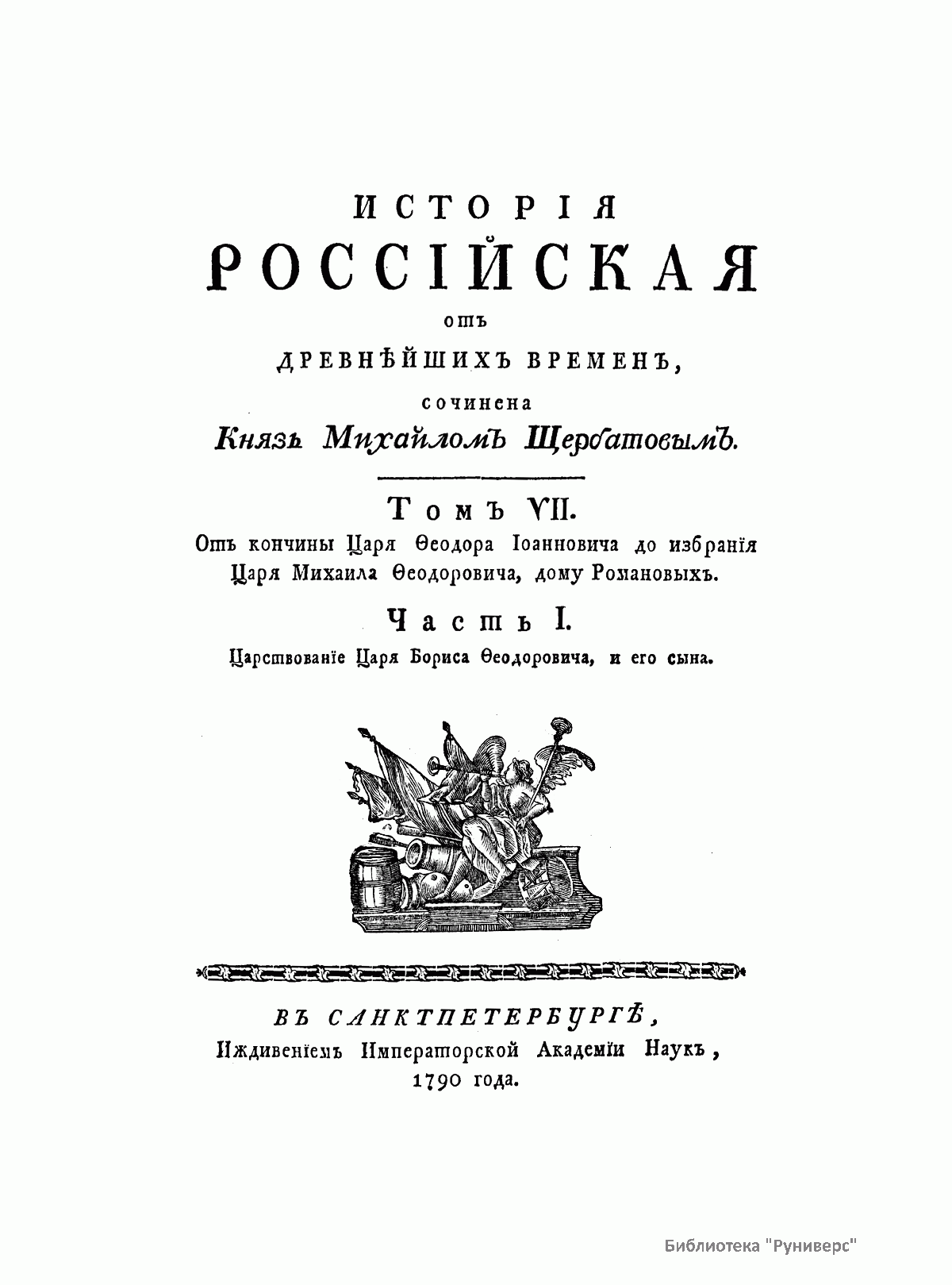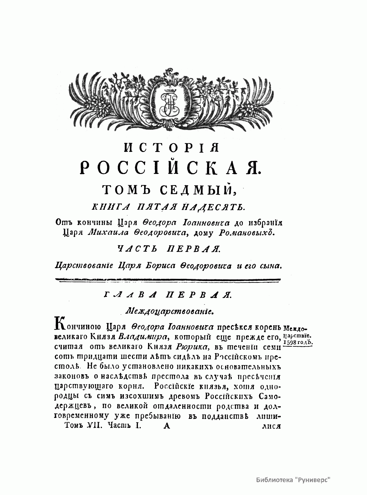 Исторiя россiйская отъ древнѣйшихъ времянъ. Томъ VII. Часть I