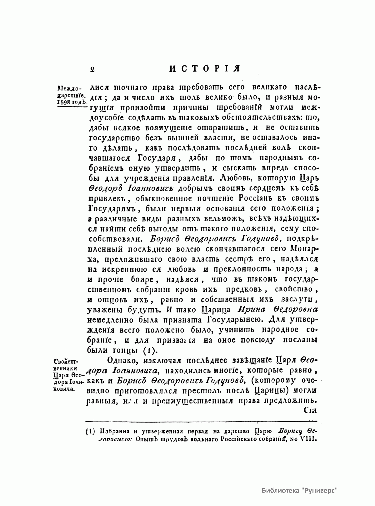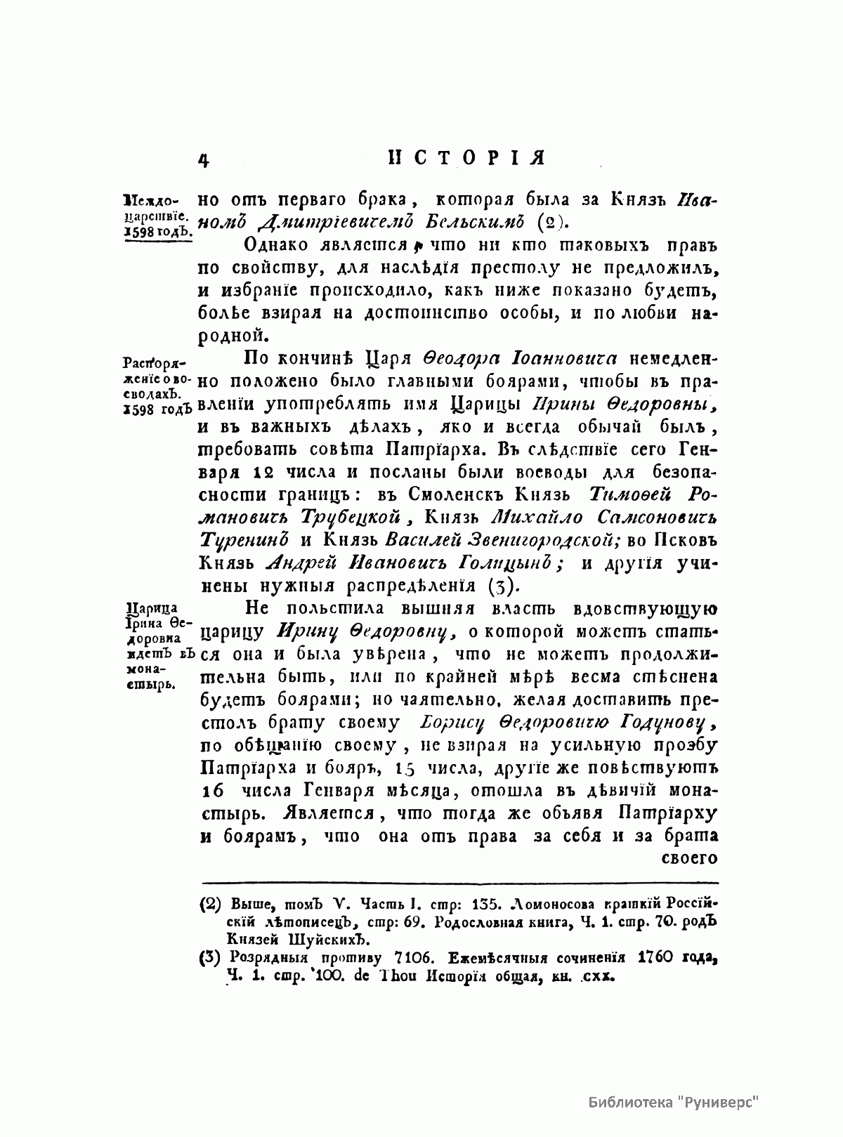 Главным трудом жизни князя М. М. Щербатова (1733–1790) стала «История Российская с древнейших времен», к написанию которой Щербатов приступил по поручению