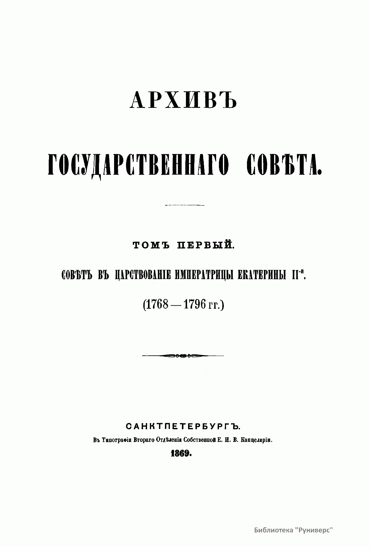 Том первый. Совет в царствование императрицы Екатерины II. 1768-1796 гг.