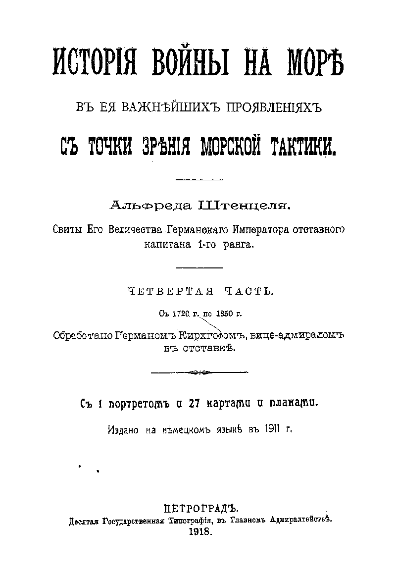 Классический фундаментальный 5-ти томный труд германского военного историка адмирала Альфреда Штенцеля, посвященный истории вооруженной борьбы на море, охватывающий огромный период от древности до середины XIX столетия, выдержал множество переизданий на разных языках в течение более 150 лет.