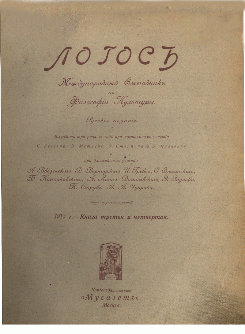 Логосъ. Международный ежегодникъ по философiи культуры. 1913. Книга III и IV