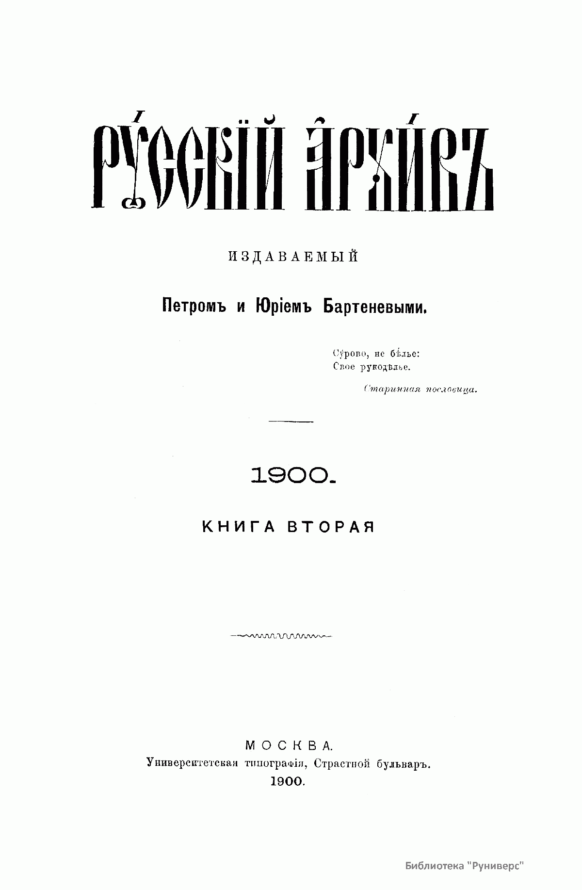 Русскiй архивъ. Историко-литературный сборникъ. 1900. Выпуски 5-8