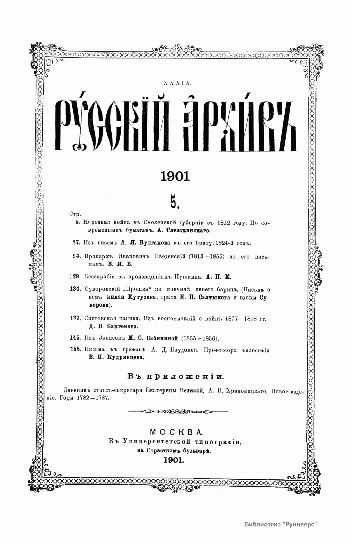 Русскiй архивъ. Историко-литературный сборникъ. 1901. Выпуски 5-8