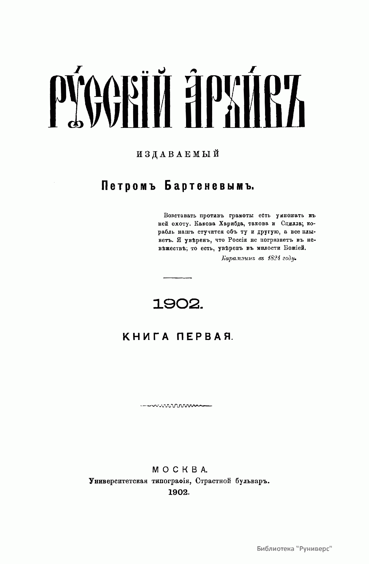 Русский архив. Историко-литературный сборник. 1902. Выпуски 1-4