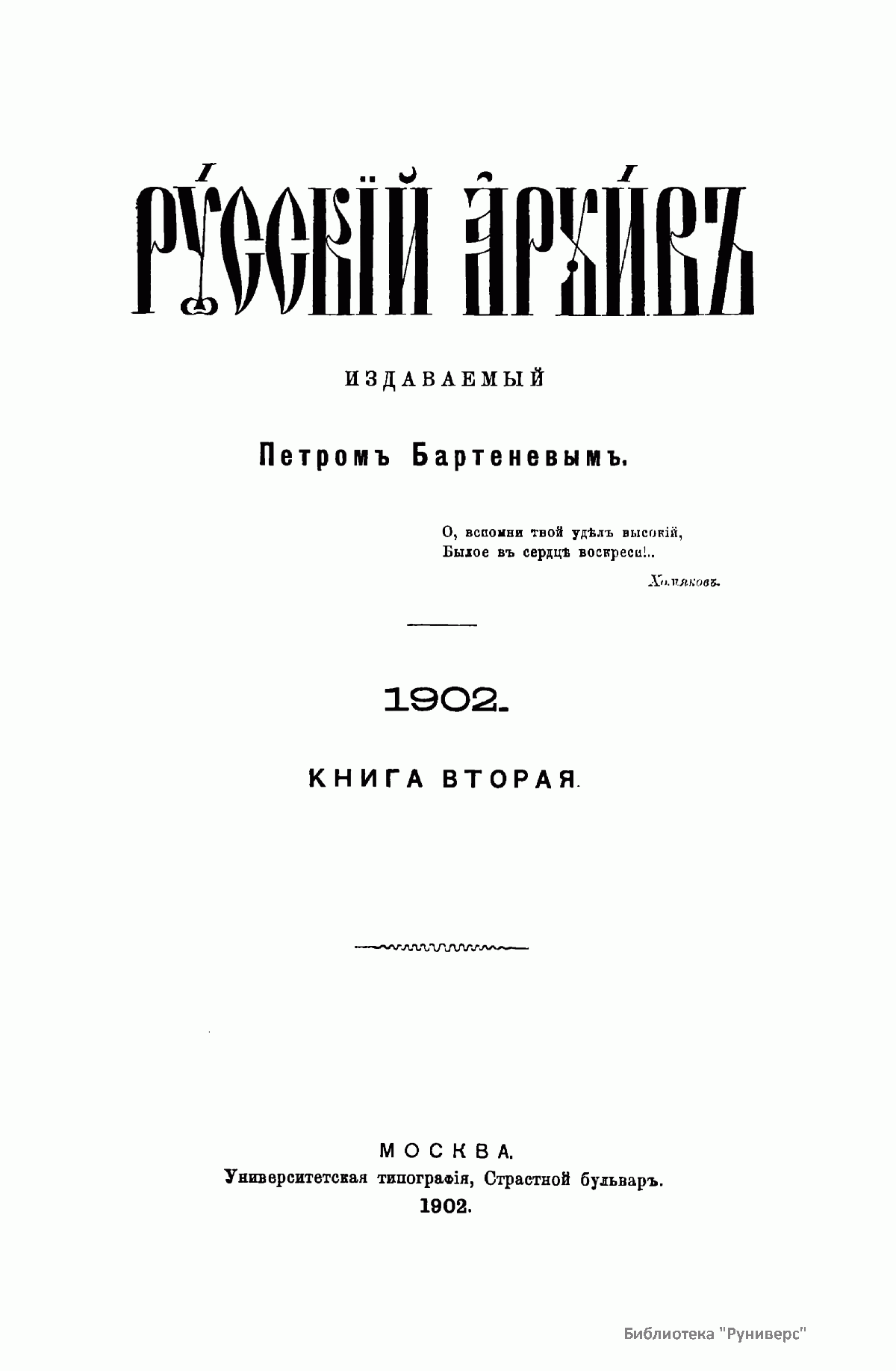 Русскiй архивъ. Историко-литературный сборникъ. 1902. Выпуски 5-8