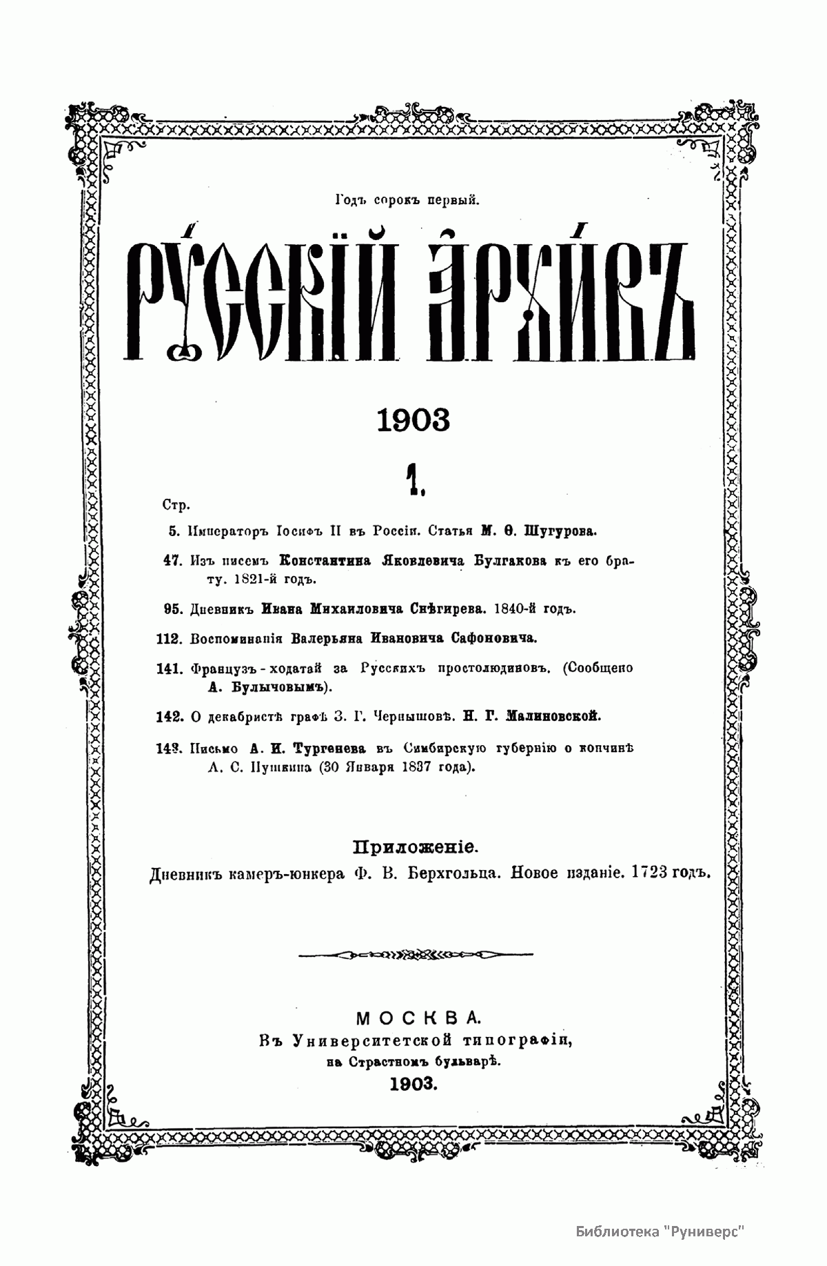 Русскiй архивъ. Историко-литературный сборникъ. 1903. Выпуски 1-4