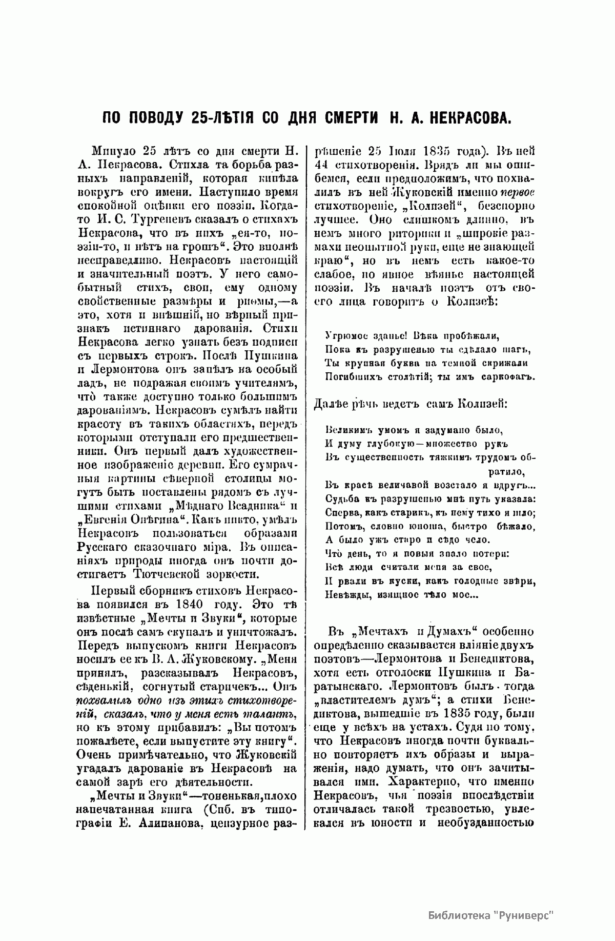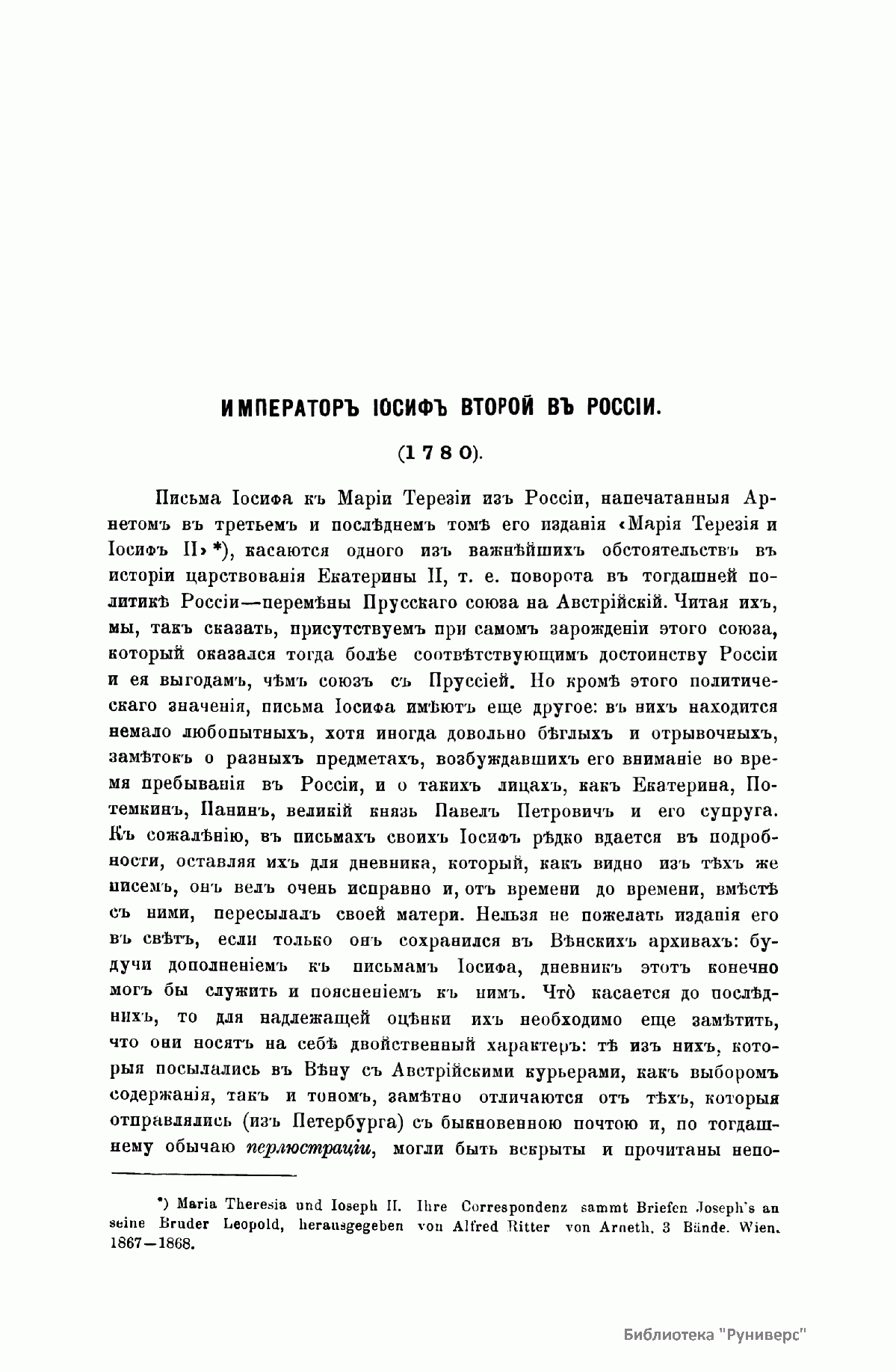 «Русский архив» — ежемесячный историко-литературный журнал, издававшийся в Москве с 1863 по 1917 год. Создателем и продолжительные годы редактором журнала был П. И. Бартенев – историк, археограф, библиограф. Этот журнал называли «живой картиной былого», поскольку он содержал преимущественно публикации неизданных мемуарных, эпистолярных, литературно-художественных и ведомственных документальных материалов, освещавших культурную и политическую историю России в XVIII и XIX вв. По числу опубликованных источников «Русский архив» стоит на первом месте среди русских исторических журналов.