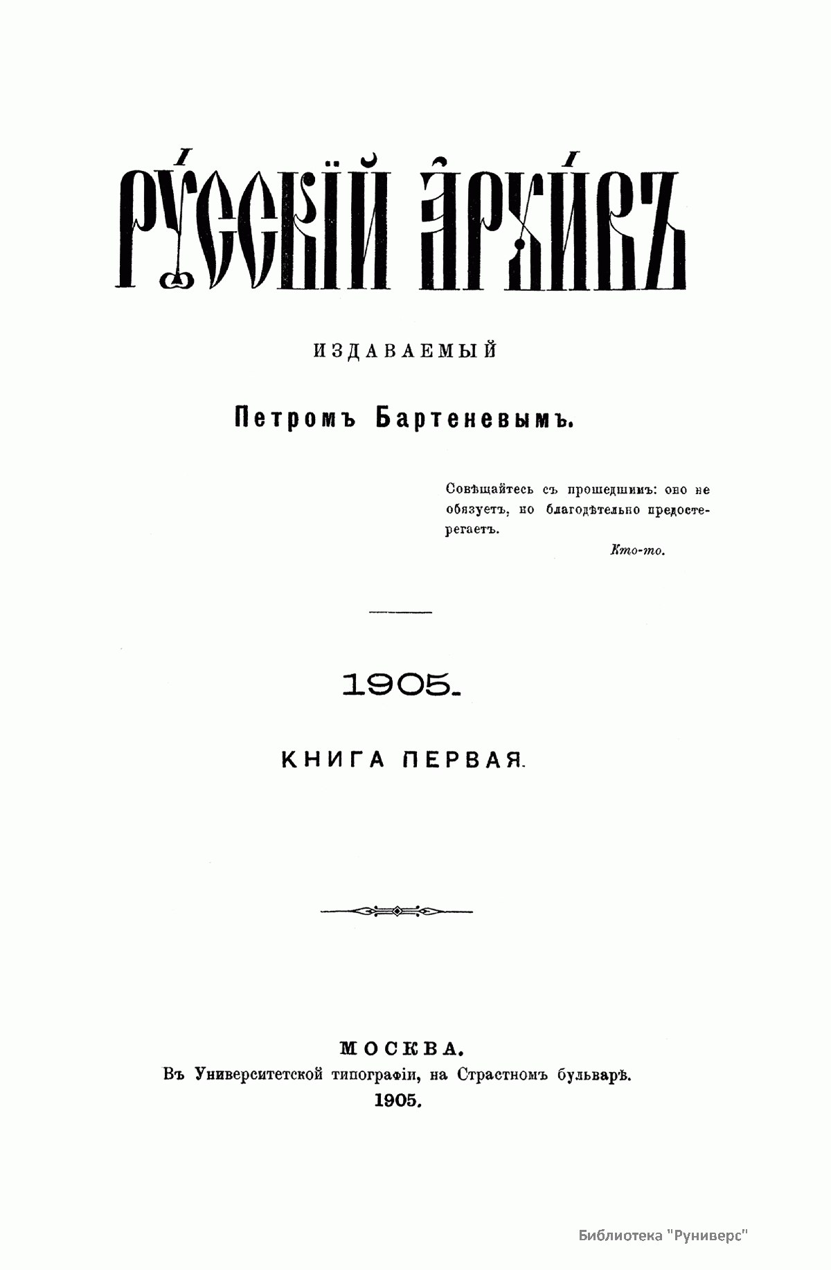 Русский архив. Историко-литературный сборник. 1905. Выпуски 1-4