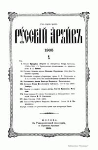 «Русский архив» — ежемесячный историко-литературный журнал, издававшийся в Москве с 1863 по 1917 год. Создателем и продолжительные годы редактором журнала был П. И. Бартенев – историк, археограф, библиограф. Этот журнал называли «живой картиной былого», поскольку он содержал преимущественно публикации неизданных мемуарных, эпистолярных, литературно-художественных и ведомственных документальных материалов, освещавших культурную и политическую историю России в XVIII и XIX вв. По числу опубликованных источников «Русский архив» стоит на первом месте среди русских исторических журналов.