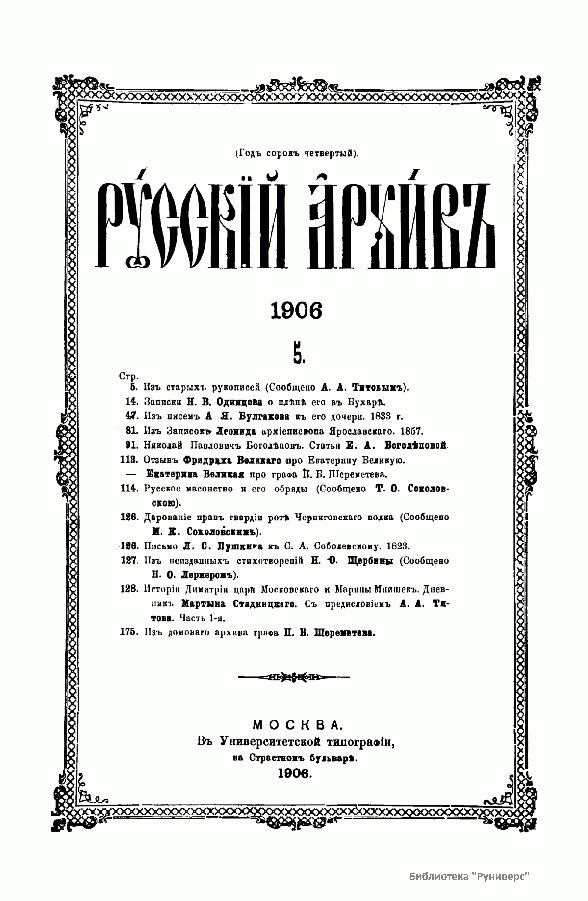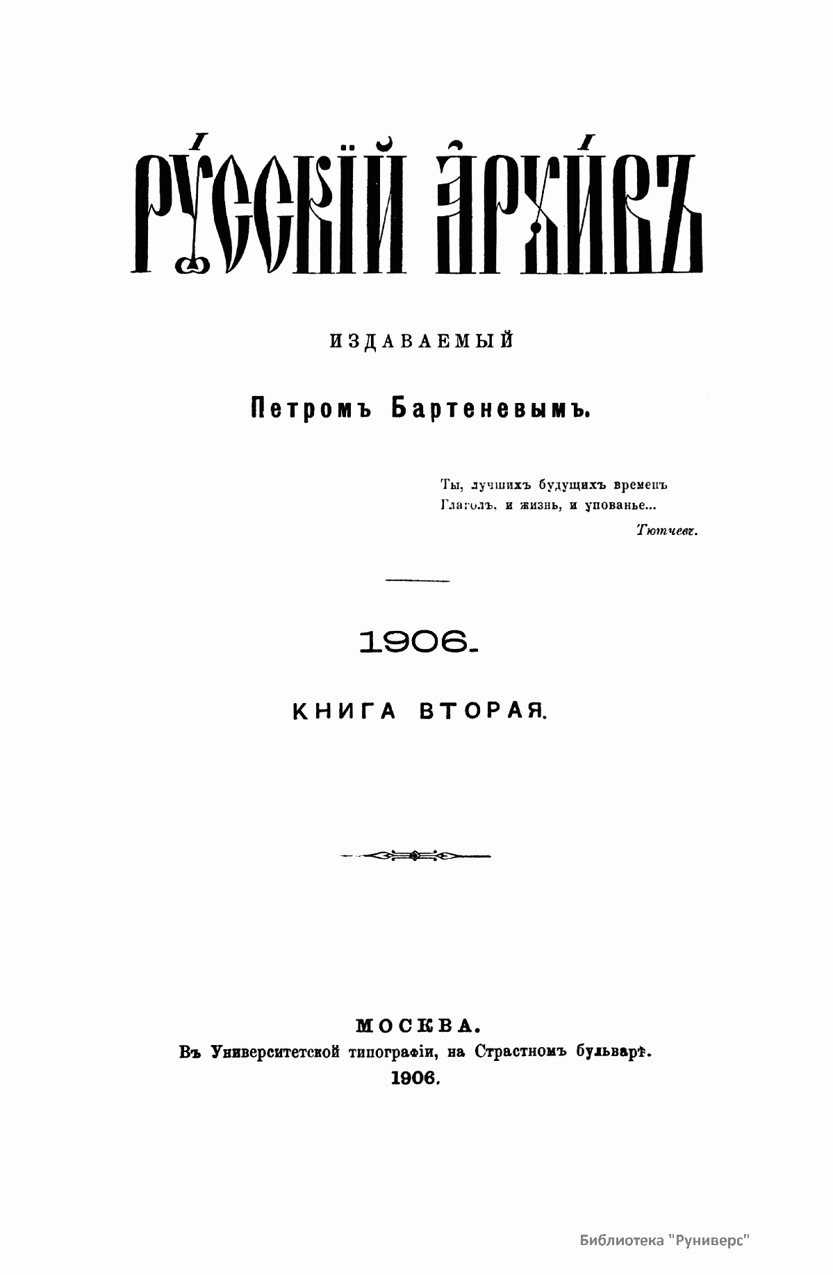 Русскiй архивъ. Историко-литературный сборникъ. 1906. Выпуски 5-8