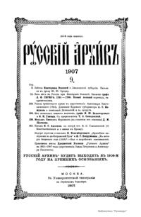 Русскiй архивъ. Историко-литературный сборникъ. 1907. Выпуски 9-12