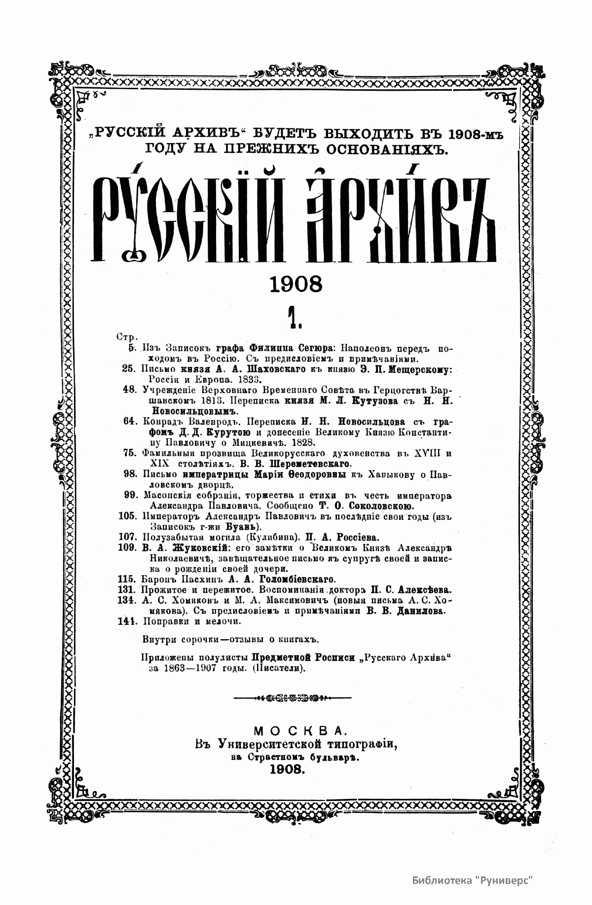 Русский архив. Историко-литературный сборник. 1908. Выпуски 1-4